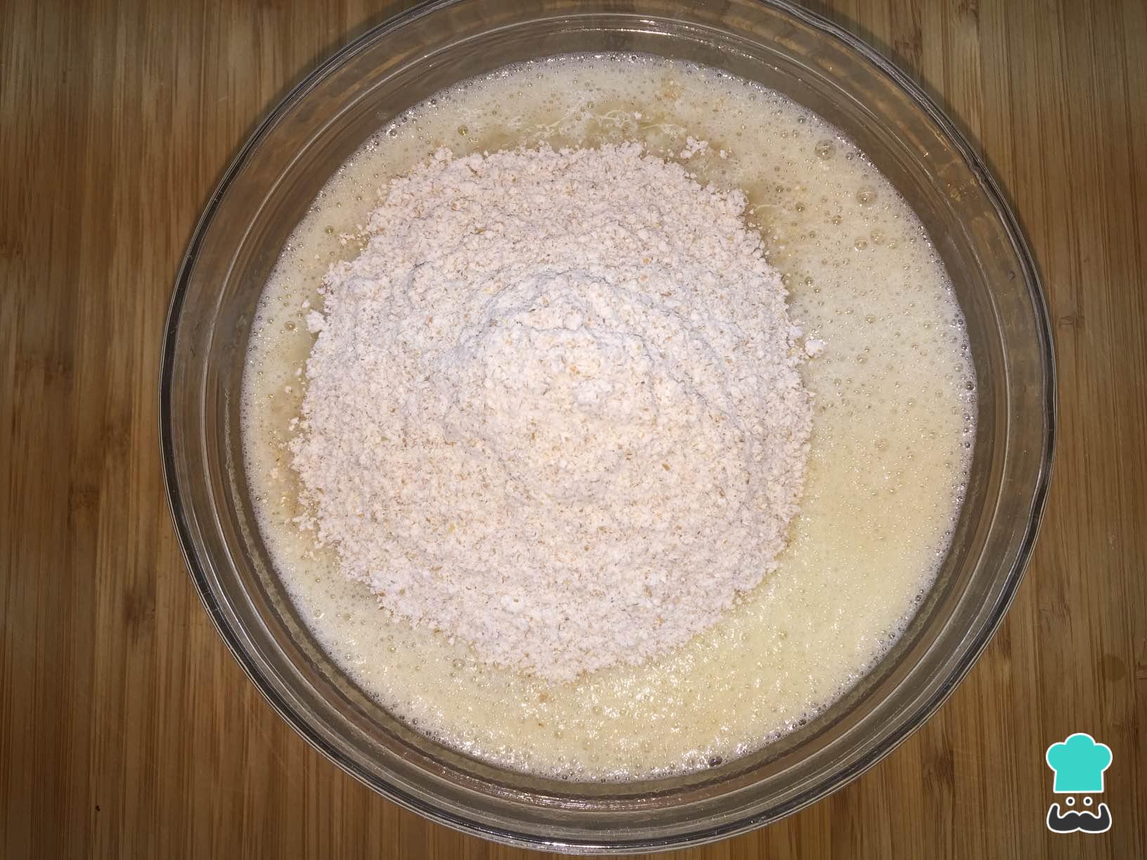 Acrescente os restantes ingredientes e misture muito bem, manualmente ou com a batedeira, até obter uma massa de bolo lisa.