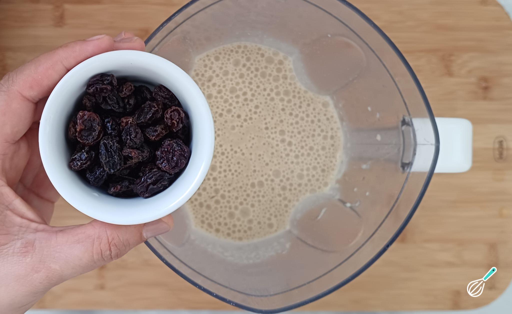 Desligue o liquidificador e adicione as uvas-passas à massa.