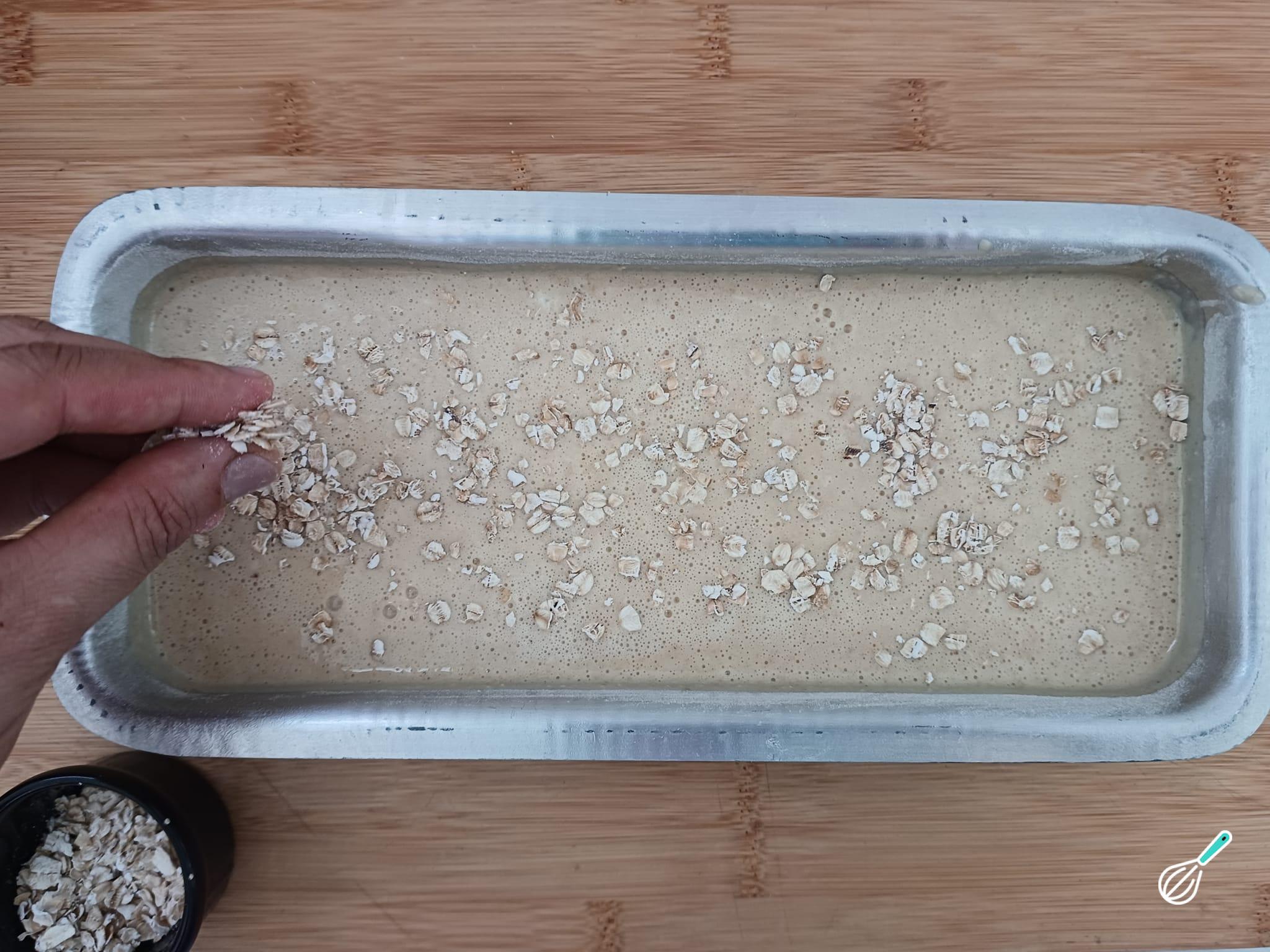 Decore com aveia em flocos ou se preferir coloque rodelas de banana para decorar.