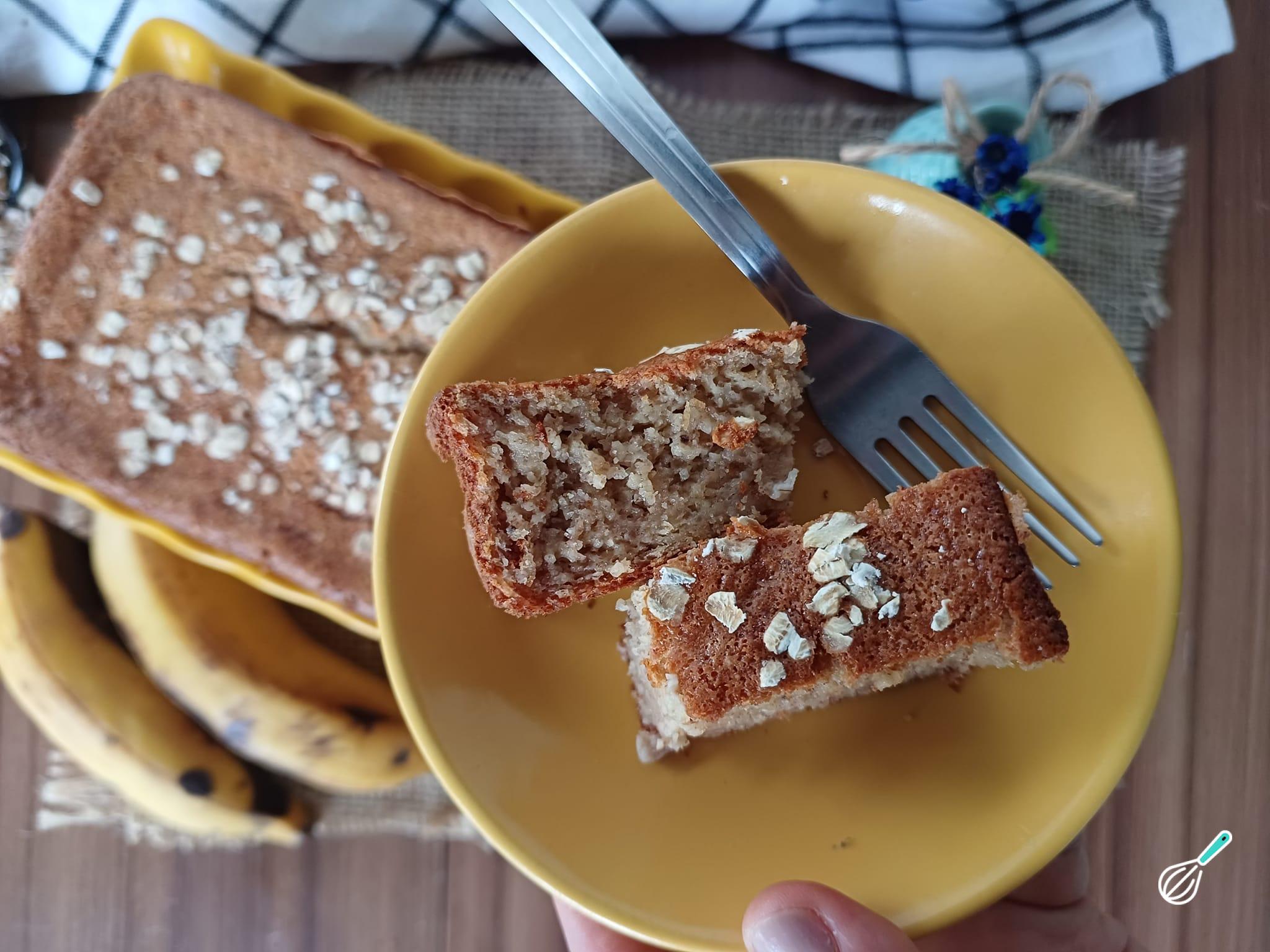 Pronto! Seu bolo de banana com aveia feito no liquidificador está pronto para ser servido!