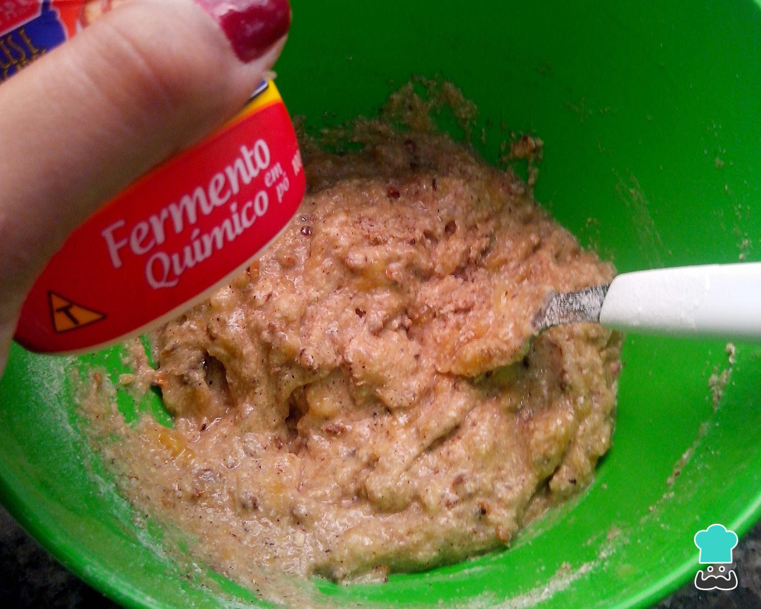Por último acrescente o fermento e volte a misturar. O resultado será uma massa de bolo espessa.