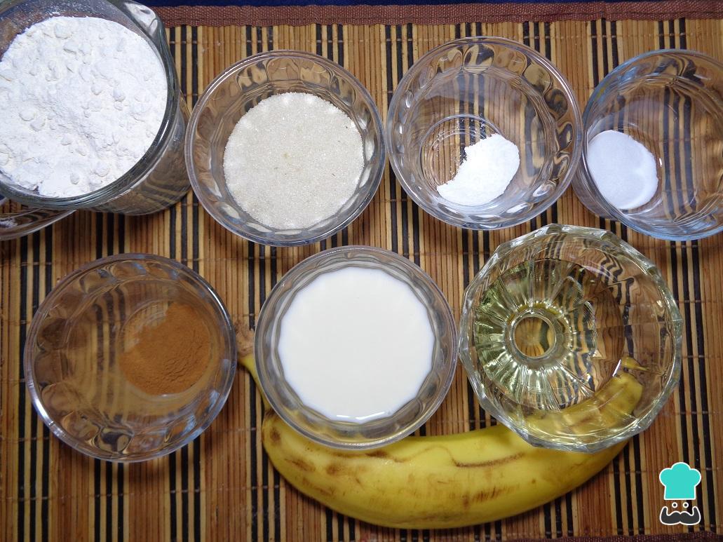 Separe todos os ingredientes necessários para o preparo deste bolo de banana caseiro. Quanto mais maduras as bananas estiverem, mais docinho e aromático ficará o bolo, podendo até reduzir um pouco a quantidade de açúcar!