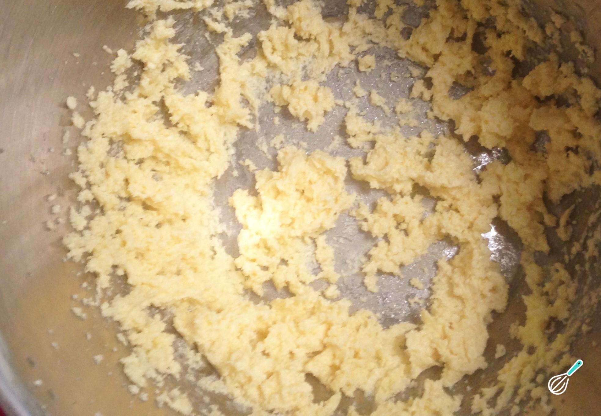 Para começar a fazer a massa do bolo de banana fácil, pegue uma tigela e misture o açúcar com a manteiga. Para facilitar, retire a manteiga da geladeira 20 minutos antes de começar. Bata até formar um creme liso e reserve.