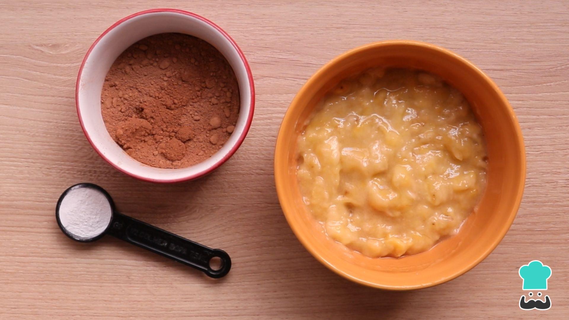 Comece separando os ingredientes para o seu Bolo de banana fit com 3 ingredientes. Amasse as bananas com um garfo até virar um purê.