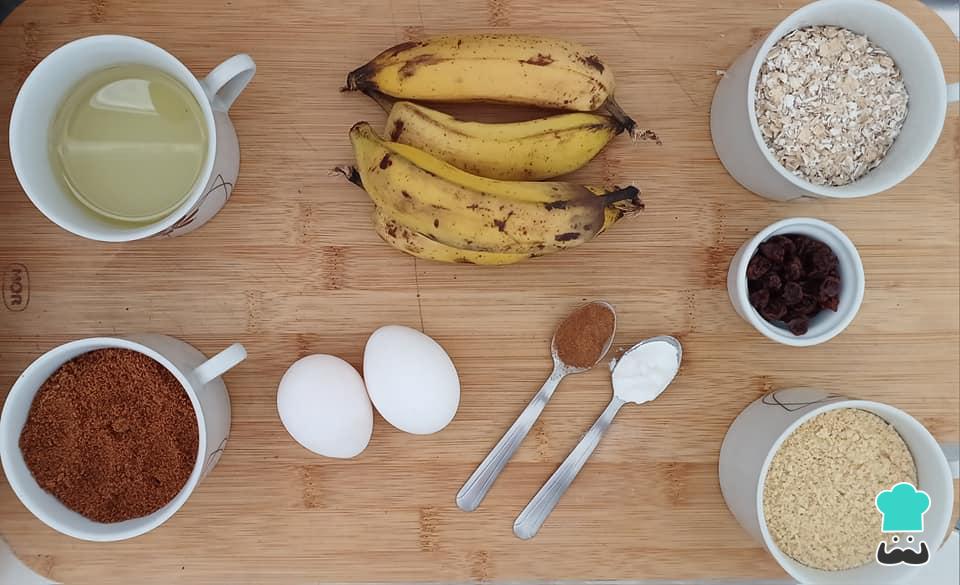 Comece separando todos os ingredientes necessários para preparar a receita de bolo de banana fit cremoso.
