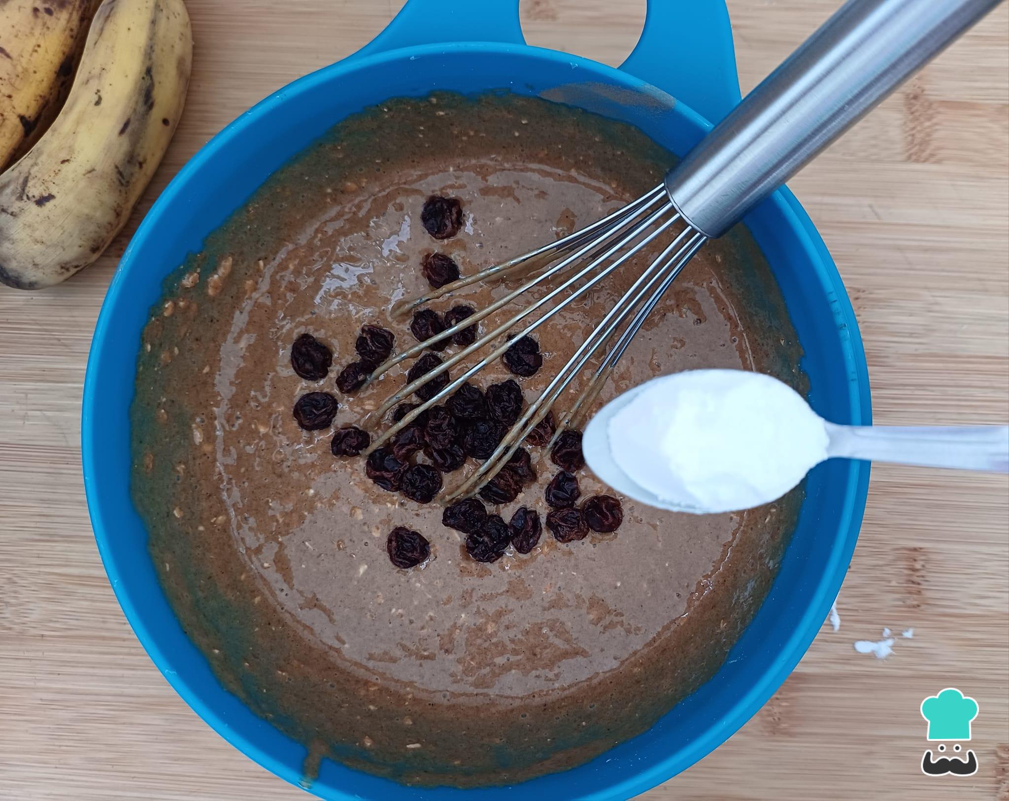 Acrescente por último o fermento em pó e as uvas passas e misture delicadamente.