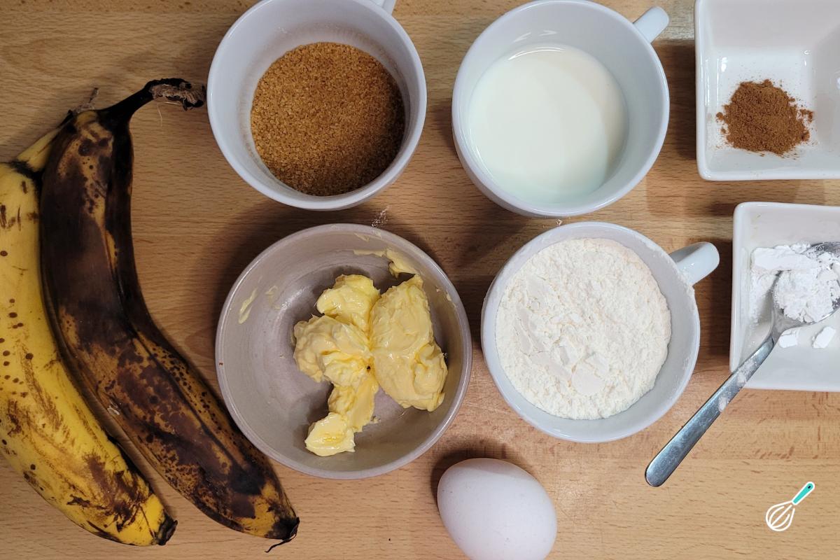 Separe os ingredientes para fazer a massa do bolo. Aqui fiz um bolo em uma forma pequena, mas você pode facilmente dobrar ou triplicar a receita para uma forma maior.