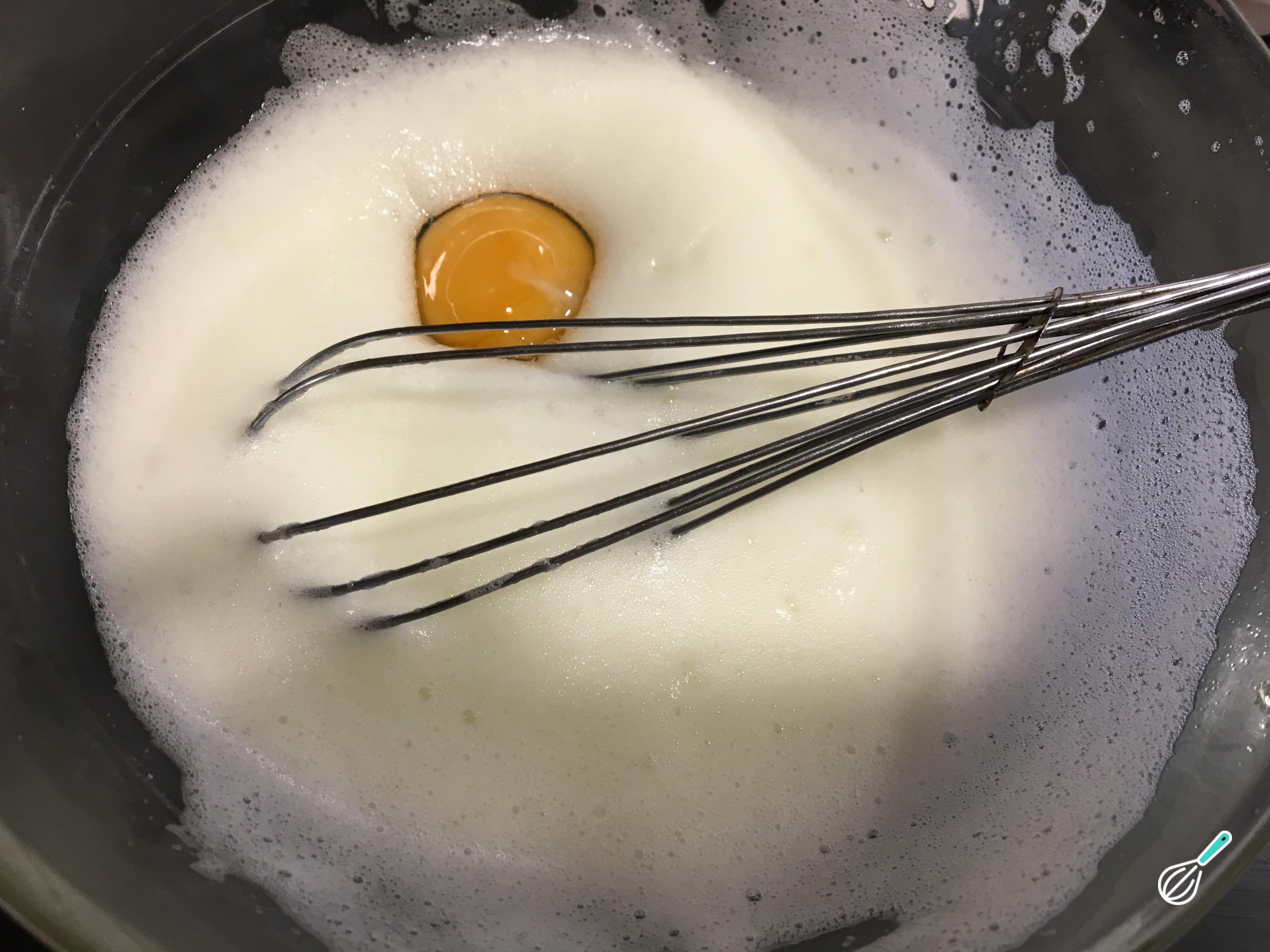 Em seguida, adicione o ovo inteiro e continue misturando.