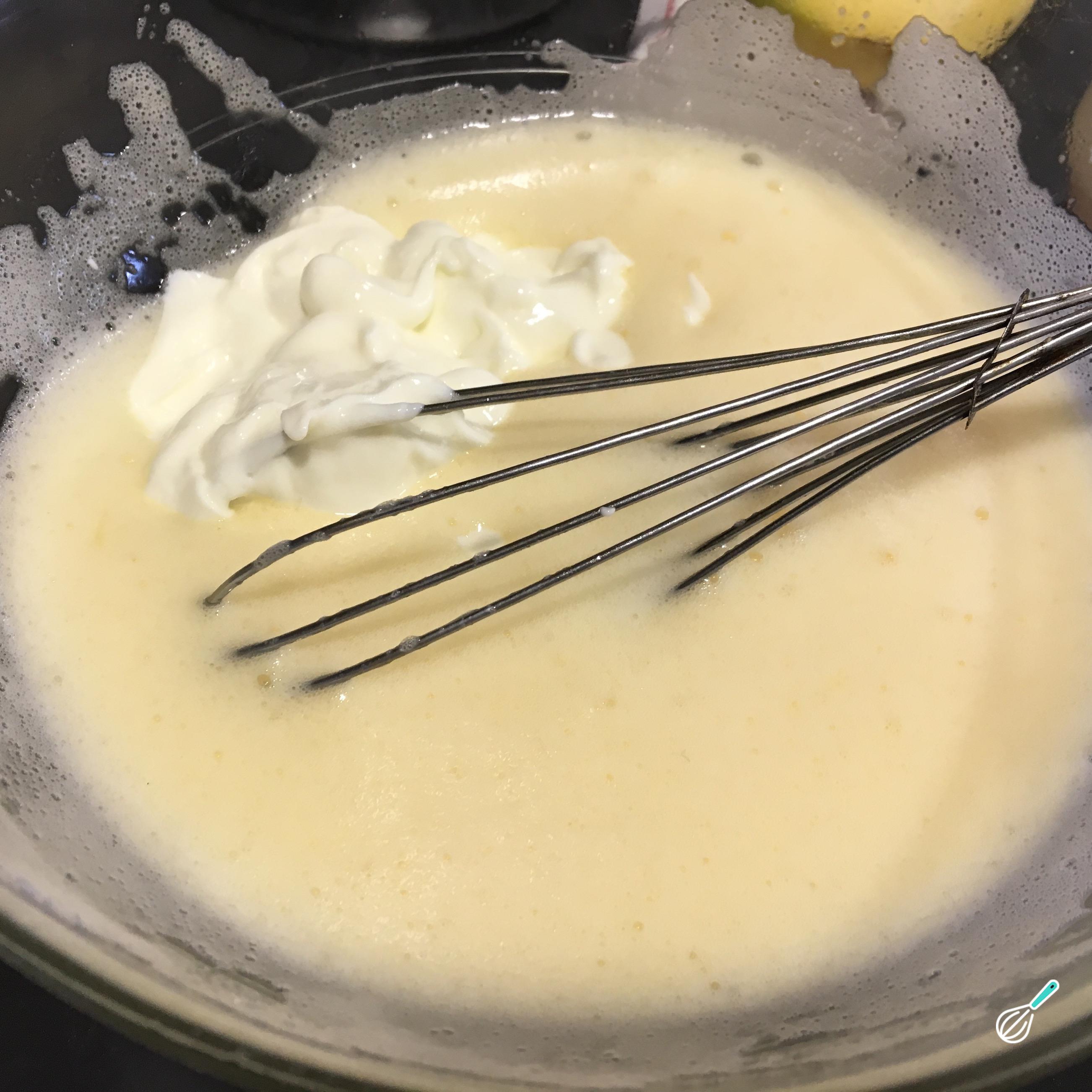 Incorpore o iogurte com baixo teor de gordura e misture com movimentos envolventes e suaves.