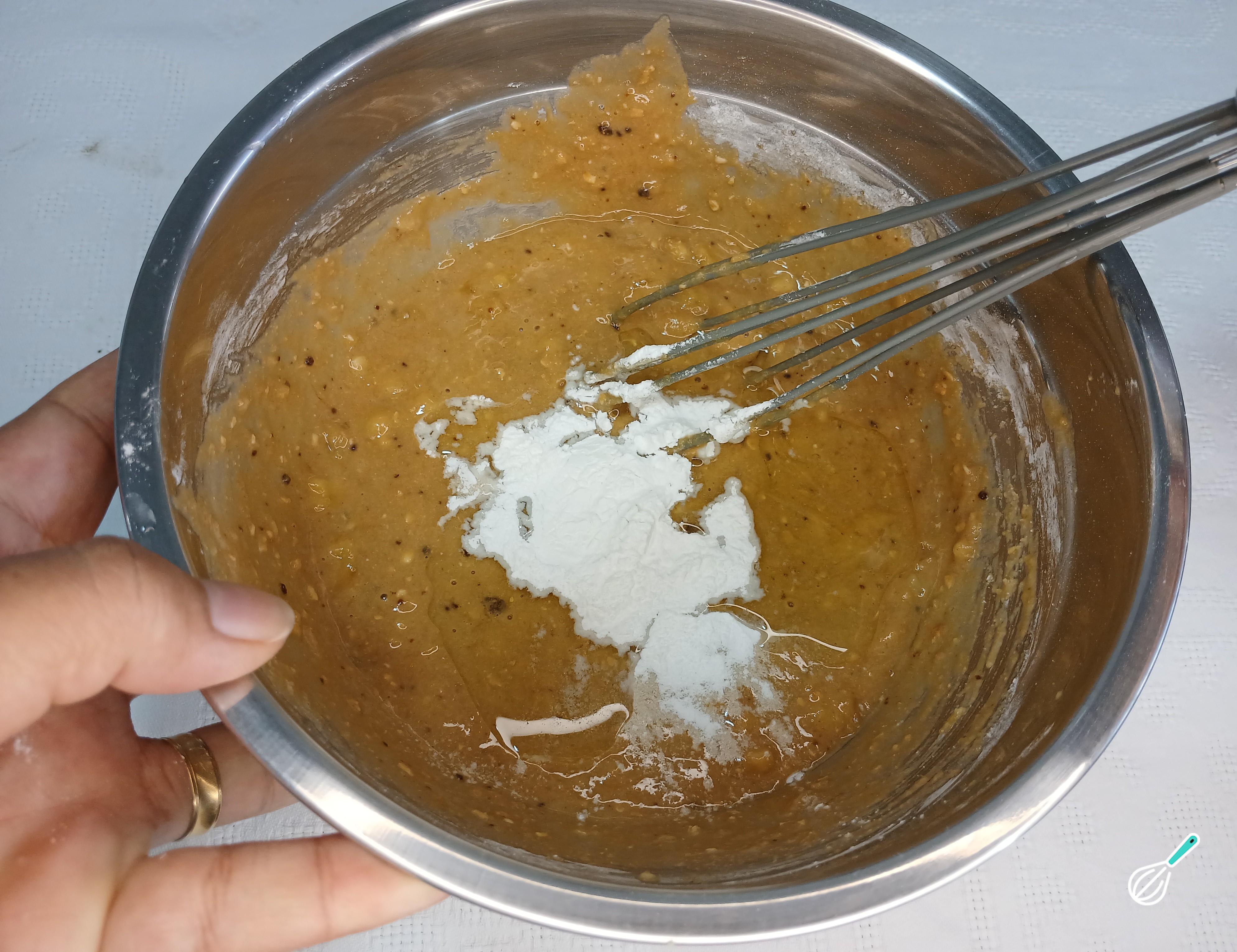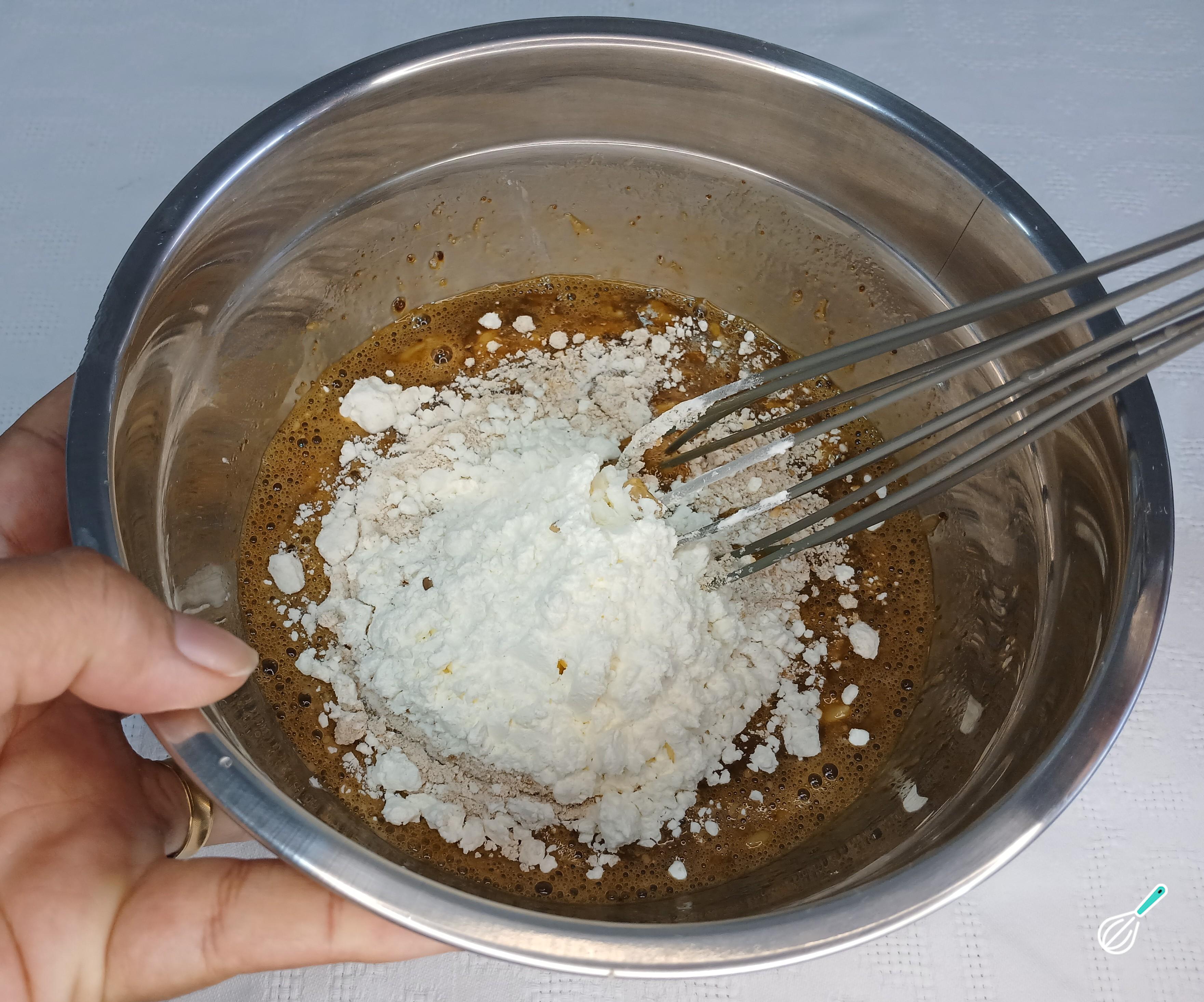 Dica: É importante utilizar o fouet pra a mistura dos ingredientes, pois precisam estar bem homogêneos. Na falta do fouet, use um garfo.