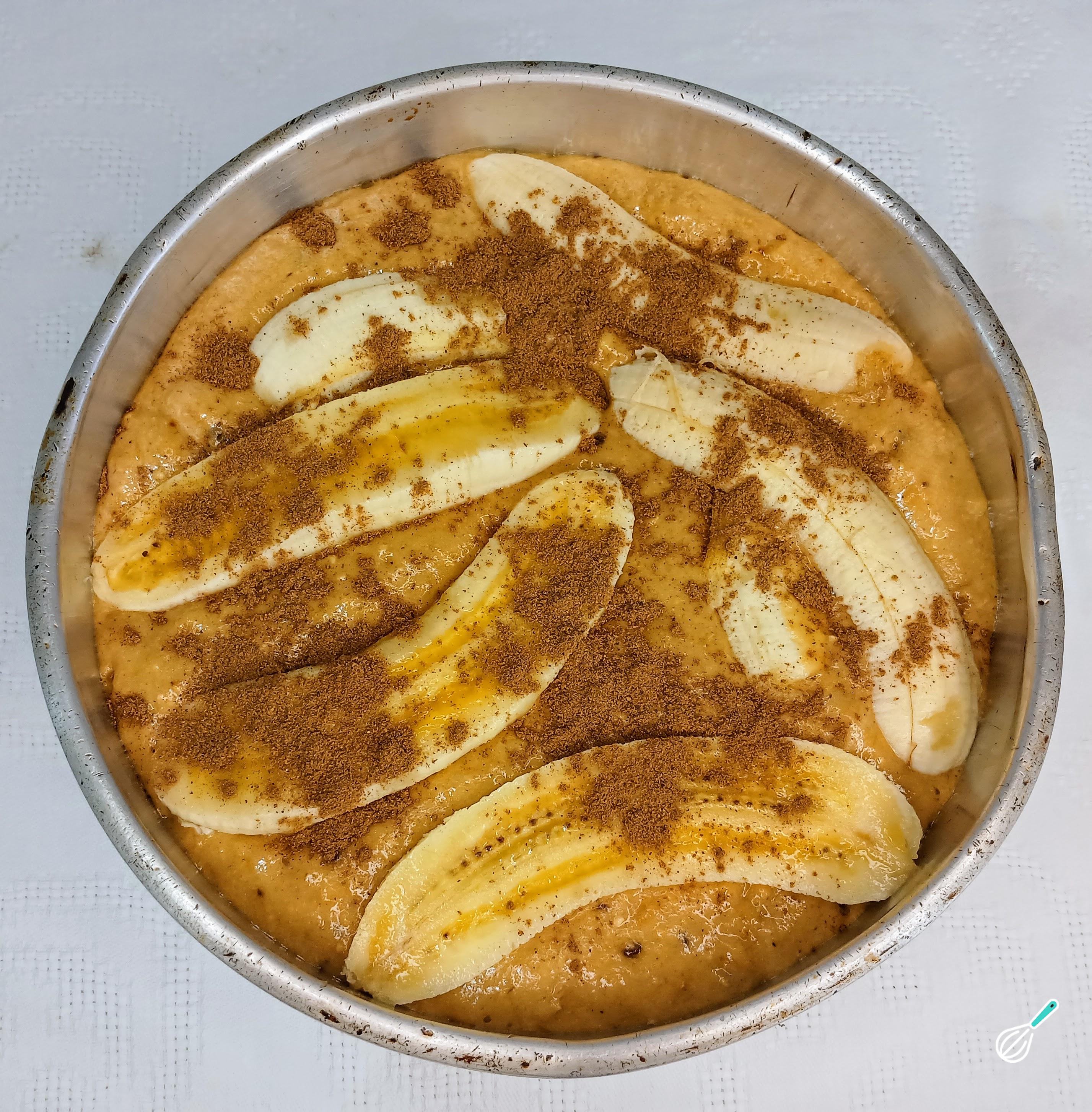 Dica: A canela é opcional. Prefira cortar as bananas em tiras para fazer a decoração do bolo.
