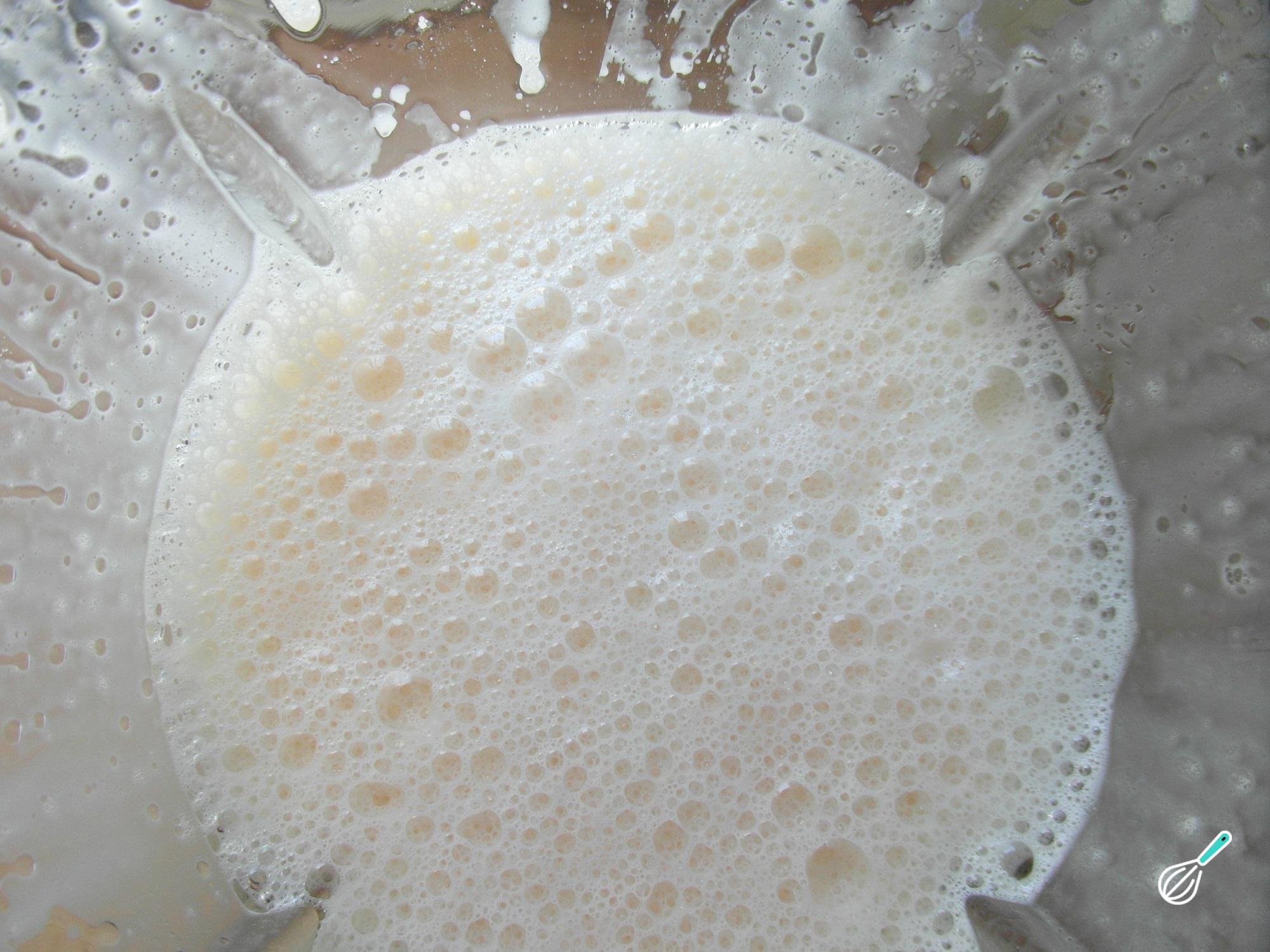 O primeiro passo dessa receita de bolo de banana no liquidificador é bater o óleo junto com os ovos e a banana cortada em pedaços. Bata por 2-3 minutos até virar um creme lisinho.