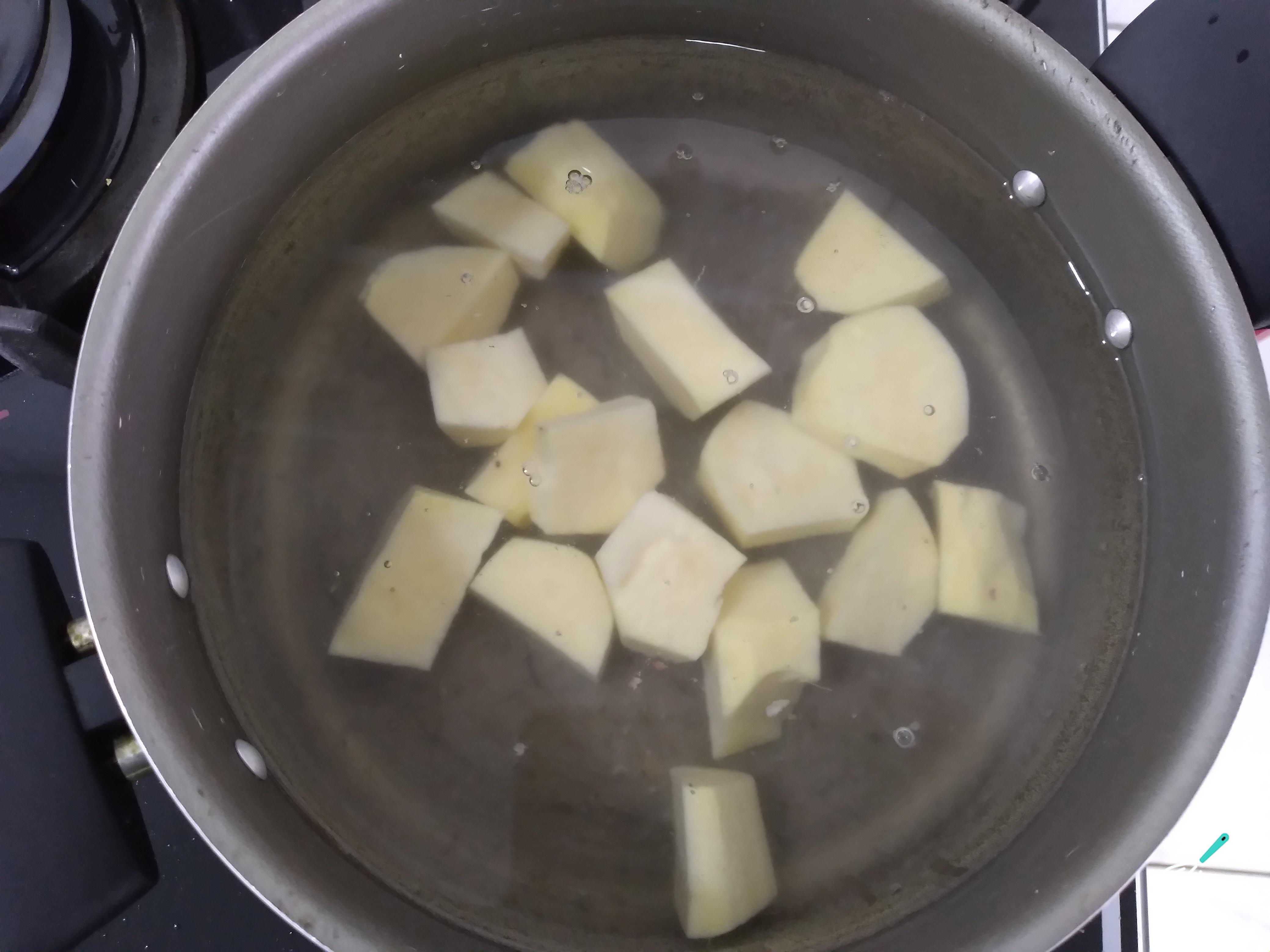 Comece cortando e colocando a batata doce para cozinhar. Em fogo médio, deixe cozinhar em água até que fique bem amolecida. Depois que estiver bem cozida (leva em torno de 15 minutos) retire da água, coloque em um prato e amasse com um garfo. Faça esse processo com a batata doce ainda quente.