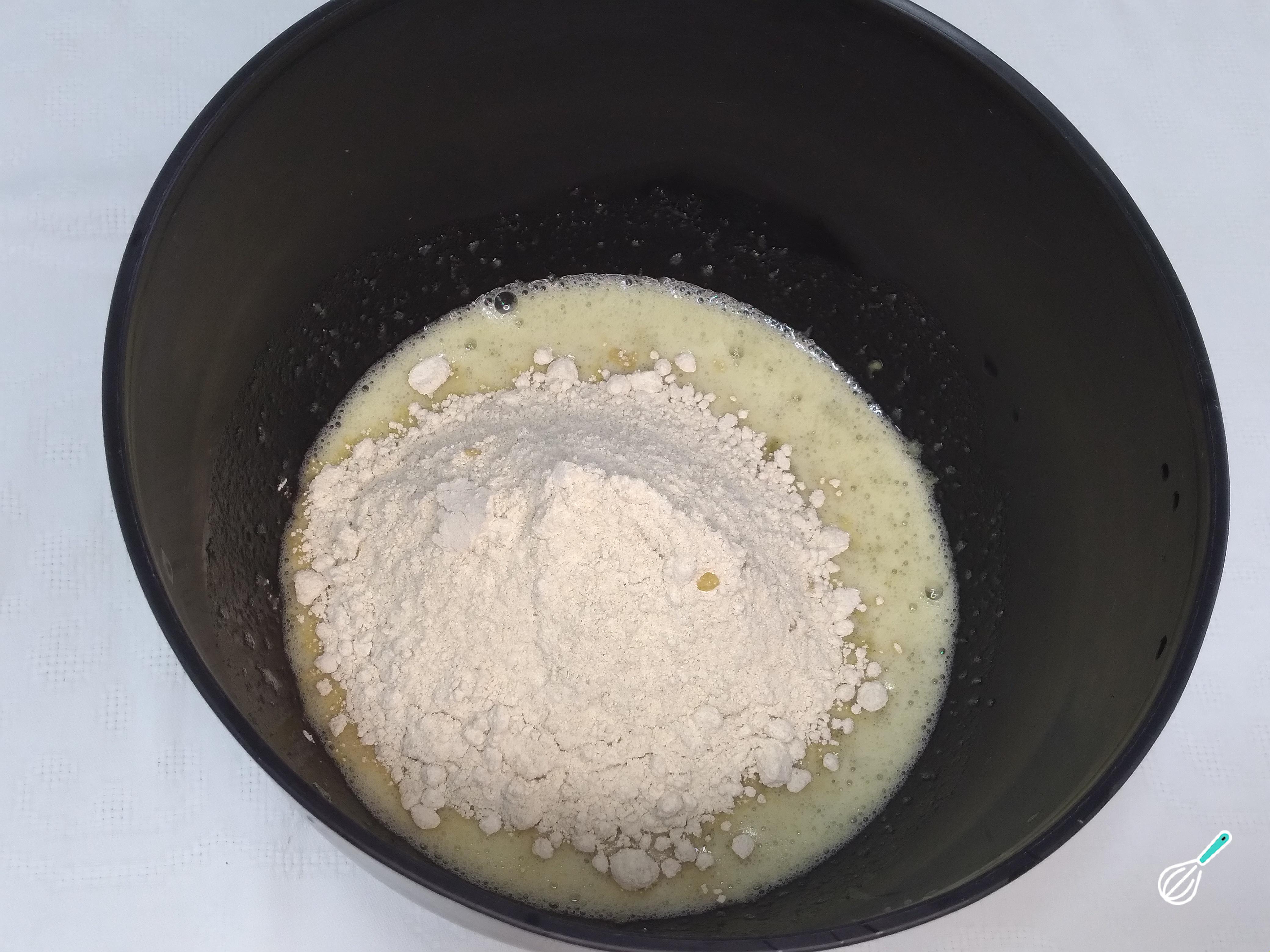 Feito isso, acrescente a farinha de aveia e misture novamente.