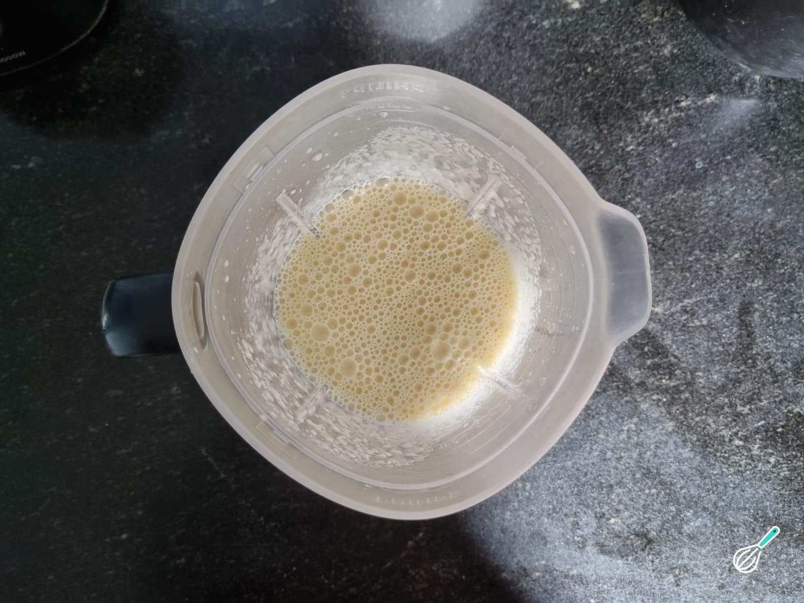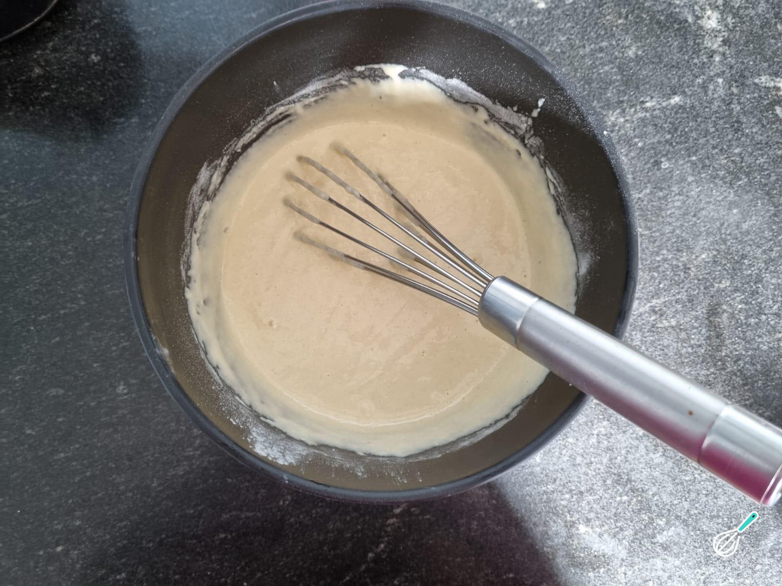 Bata bem, até ficar uma mistura lisa e homogênea por aproximadamente dois minutos e transfira para uma tigela.