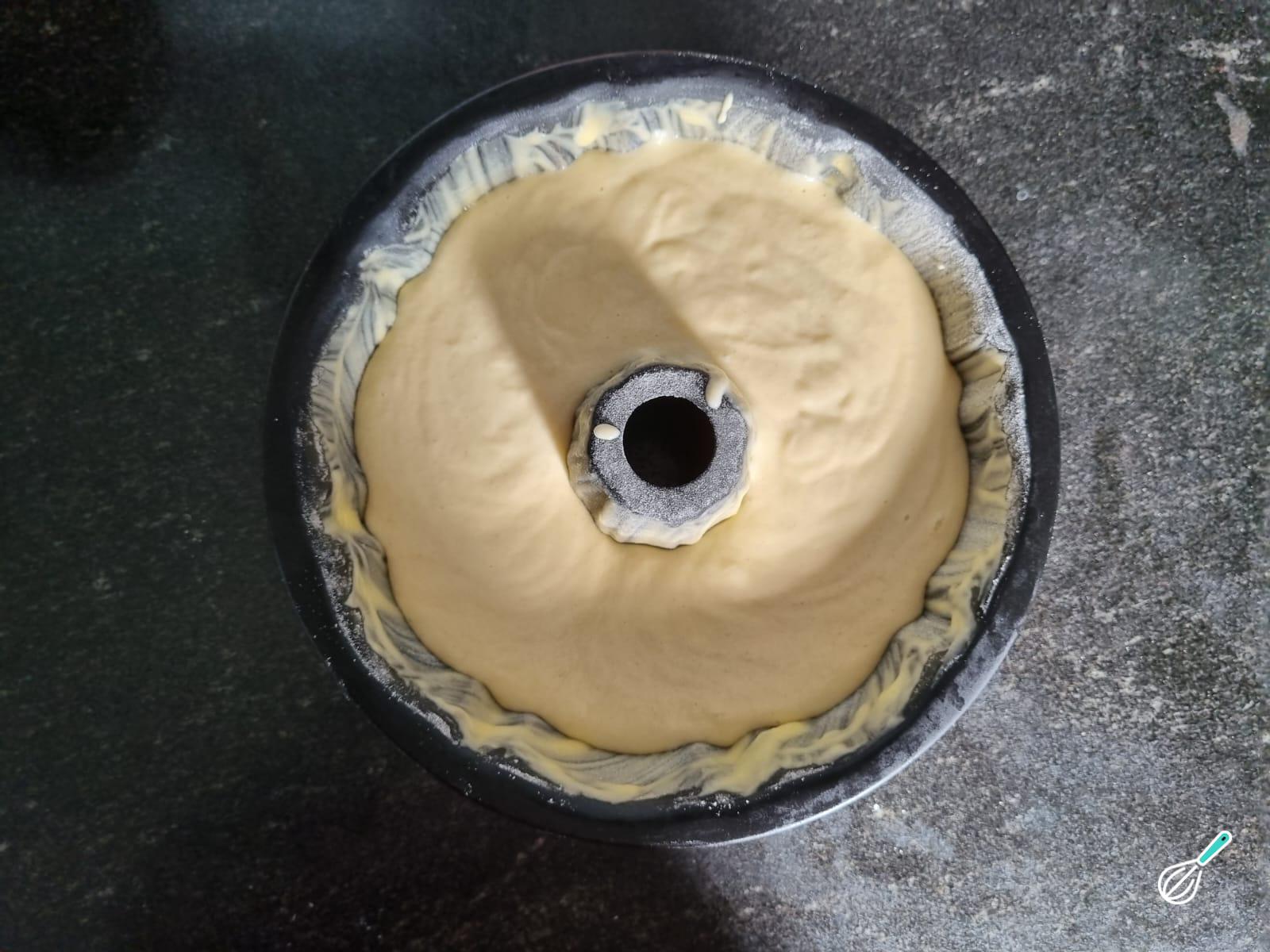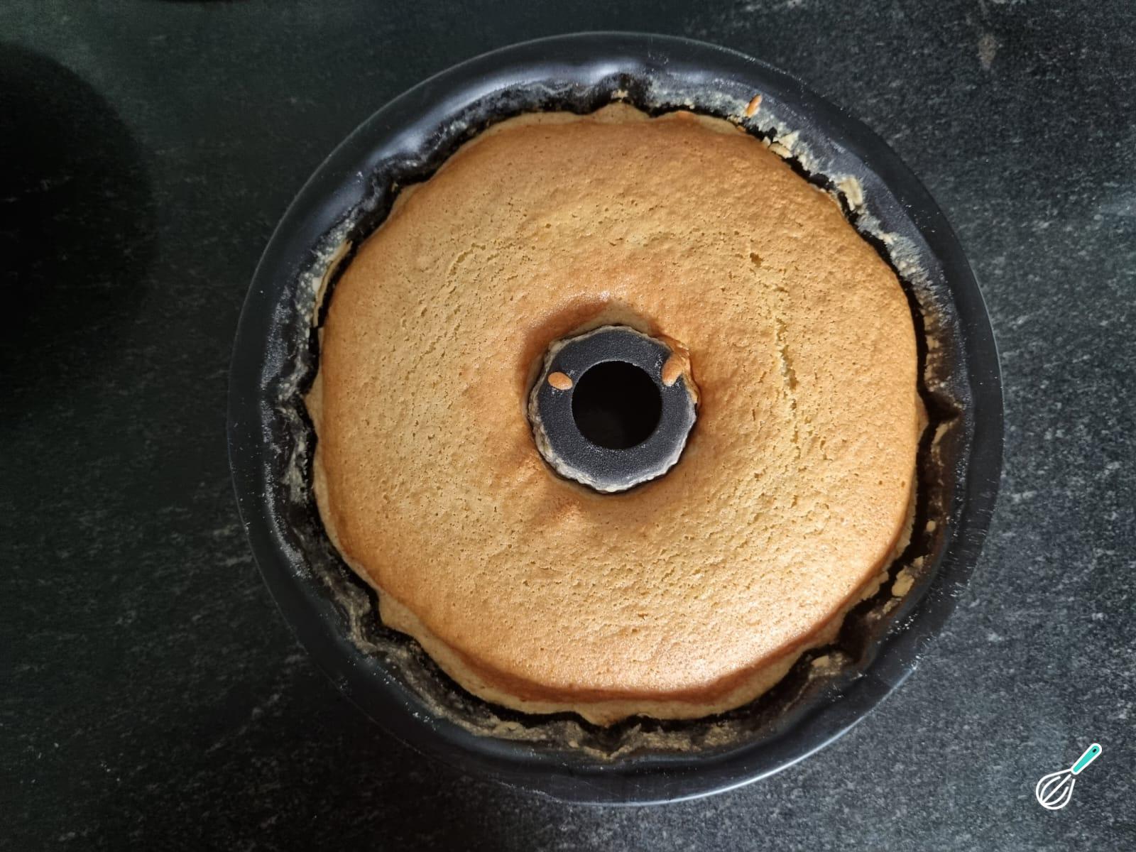 Antes de tirar do forno, faça o teste do palito, se sair seco retire do forno e espere amornar antes de desenformar. Você pode dar um toque extra, por exemplo: ao invés de polvilhar a forma com farinha, polvilhe com açúcar e canela, pode adicionar um pouco de baunilha, raspas de cítricos ou gotas de chocolate na massa.