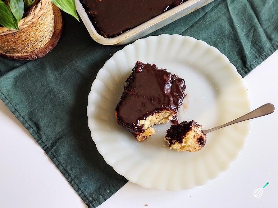 Receita de Bolo de baunilha com cobertura de chocolate