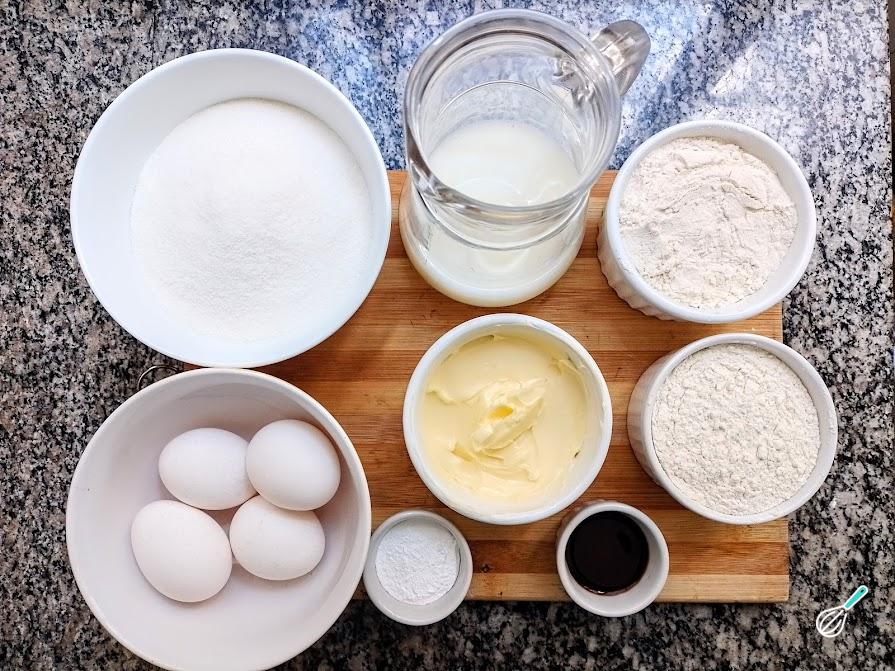 1. Separe os ingredientes que serão utilizados no preparo. Os ovos e o leite integral deverão estar em temperatura ambiente.