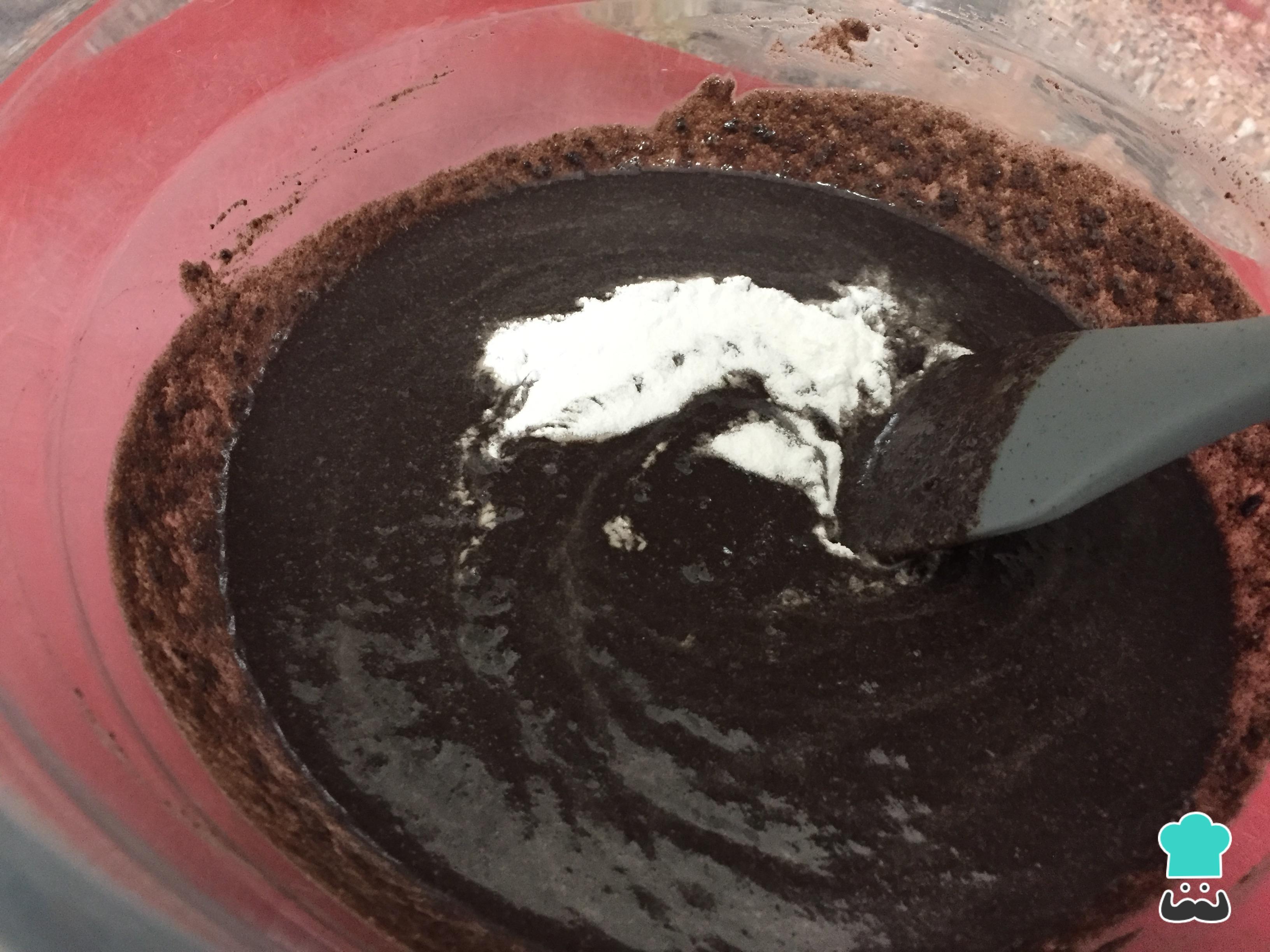 Por fim adicione o fermento e misture levemente. Esta é a massa do bolo de Oreo com 3 ingredientes, não precisa adicionar mais nada!