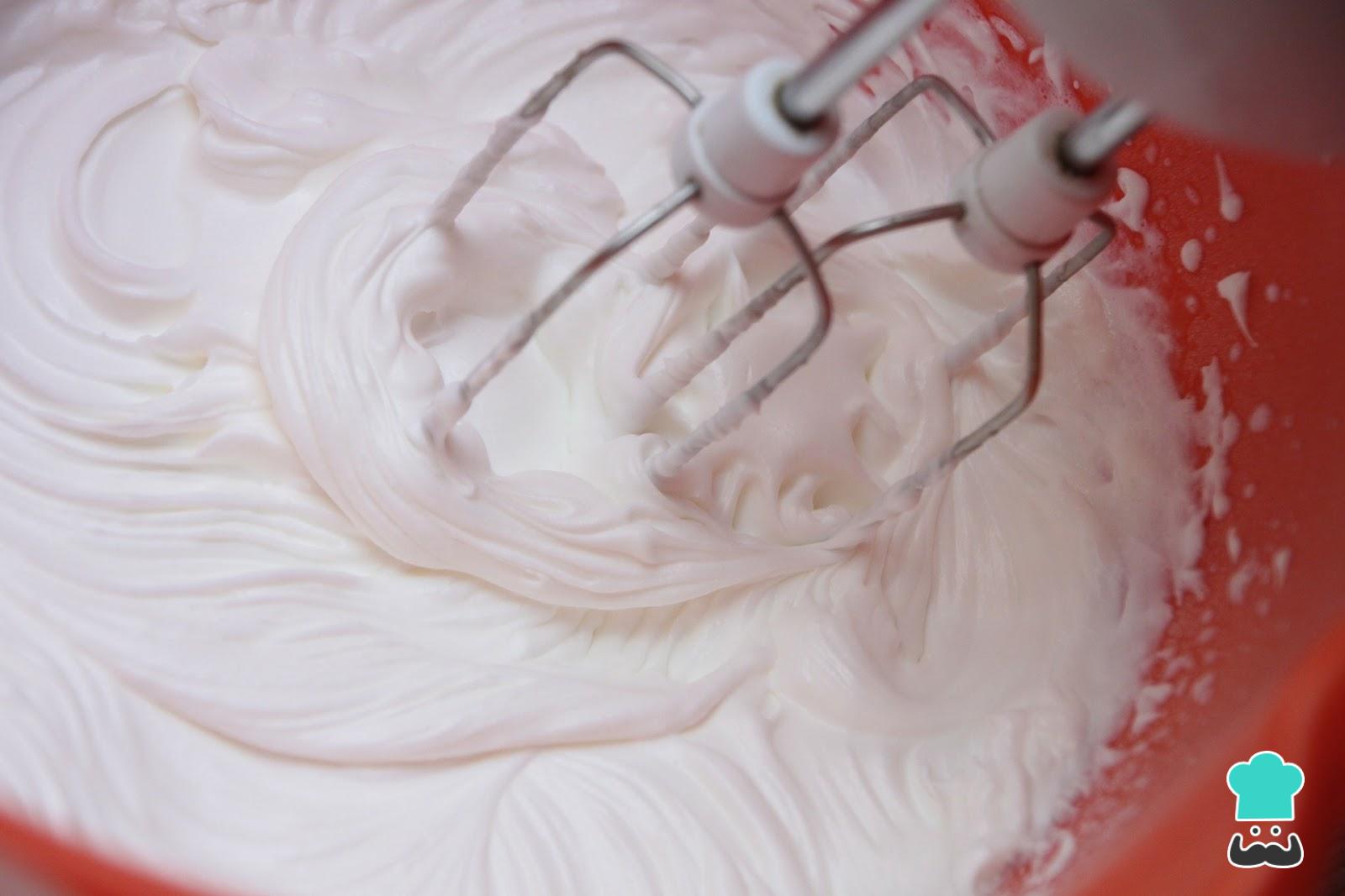 É bem simples fazer esta sobremesa de bolacha! Comece por bater as natas ou o creme de leite em uma taça, até ficar bem cremoso.