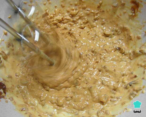Junte o leite condensado cozido ou o doce de leite e bata mais um pouco, até dissolver por completo.