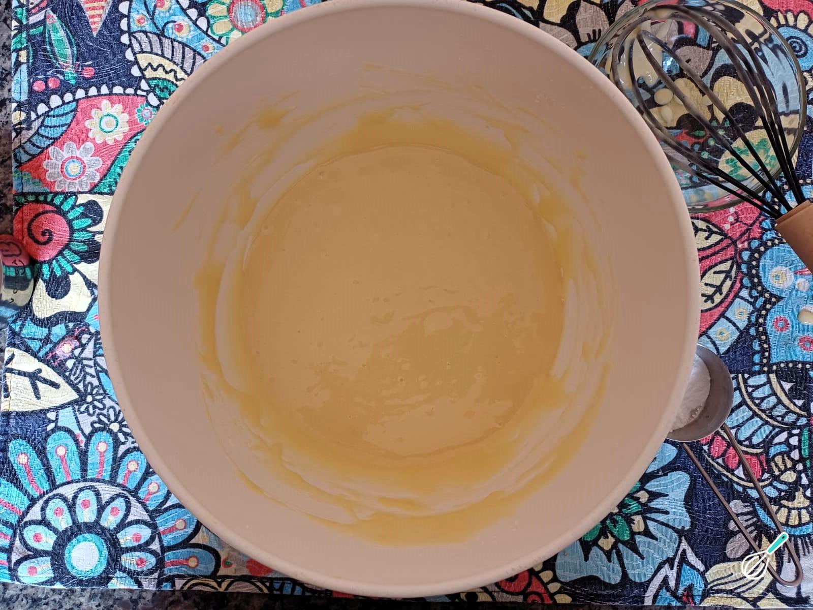Dica: Evite bater demais após colocar a farinha de trigo para não deixar o bolo pesado.