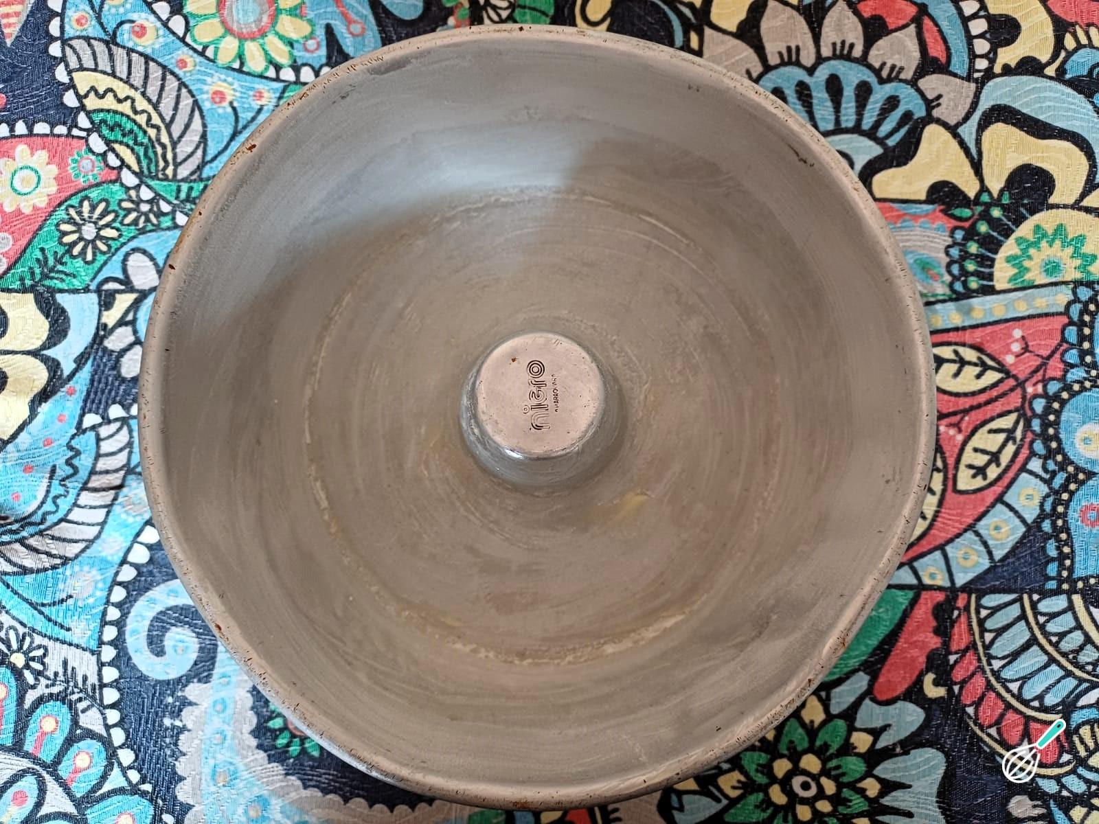 Unte a forma com manteiga ou margarina e polvilhe farinha de trigo, isso evita que o bolo grude e ajuda a desenformar perfeito.