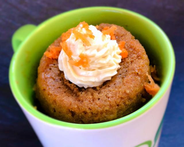 Se quiser coloque um pouco de chantilly no seu bolo de cenoura de caneca fofinho e está pronto a servir! Bom apetite e conte nos comentários o que você achou.