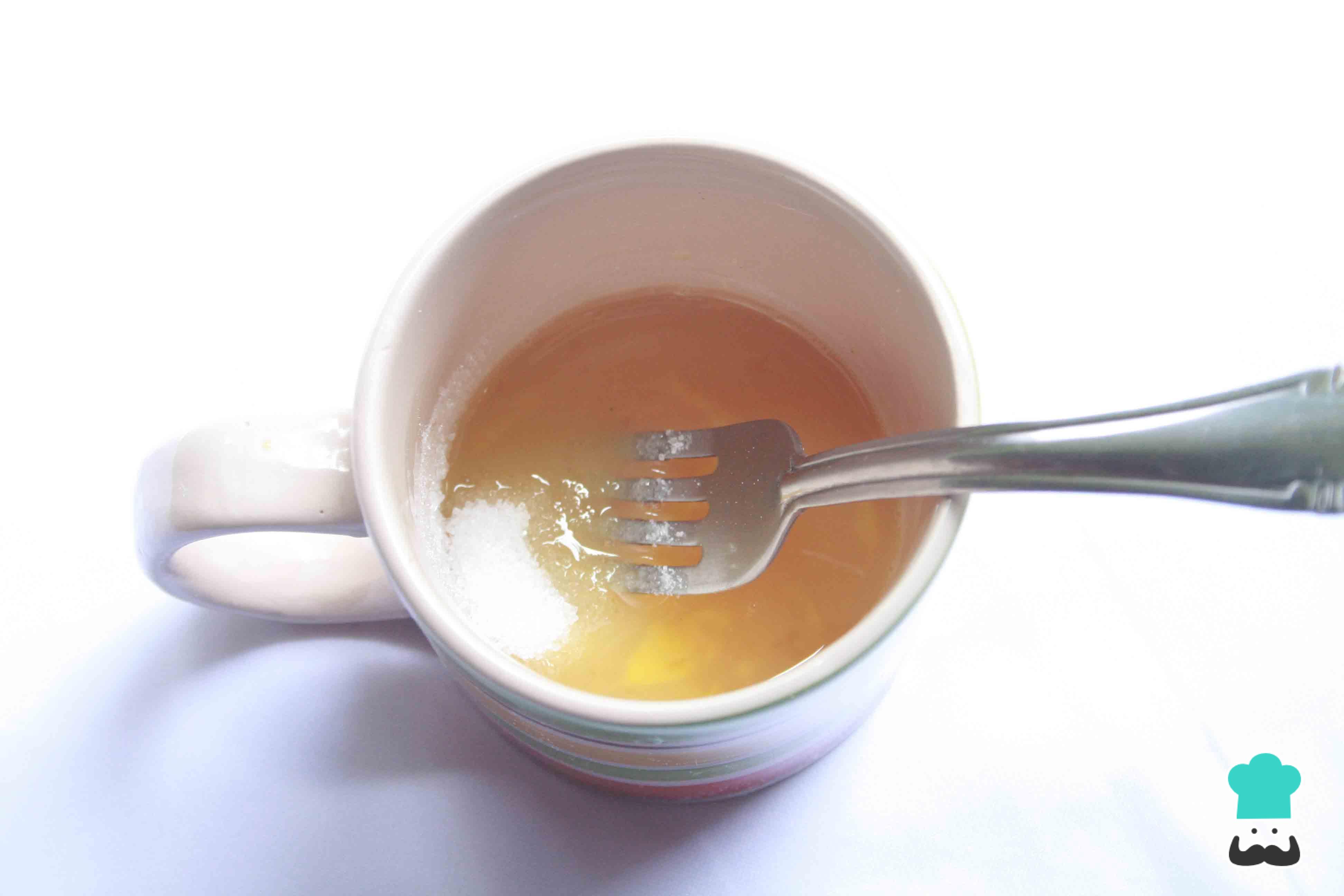 Dica: Preparar a massa do bolo diretamente na xícara em que ele vai cozinhar é bem prático. No entanto, se a sua xícara for pequena, aconselhamos misturar os ingredientes numa tigela e depois transferir para uma xícara.