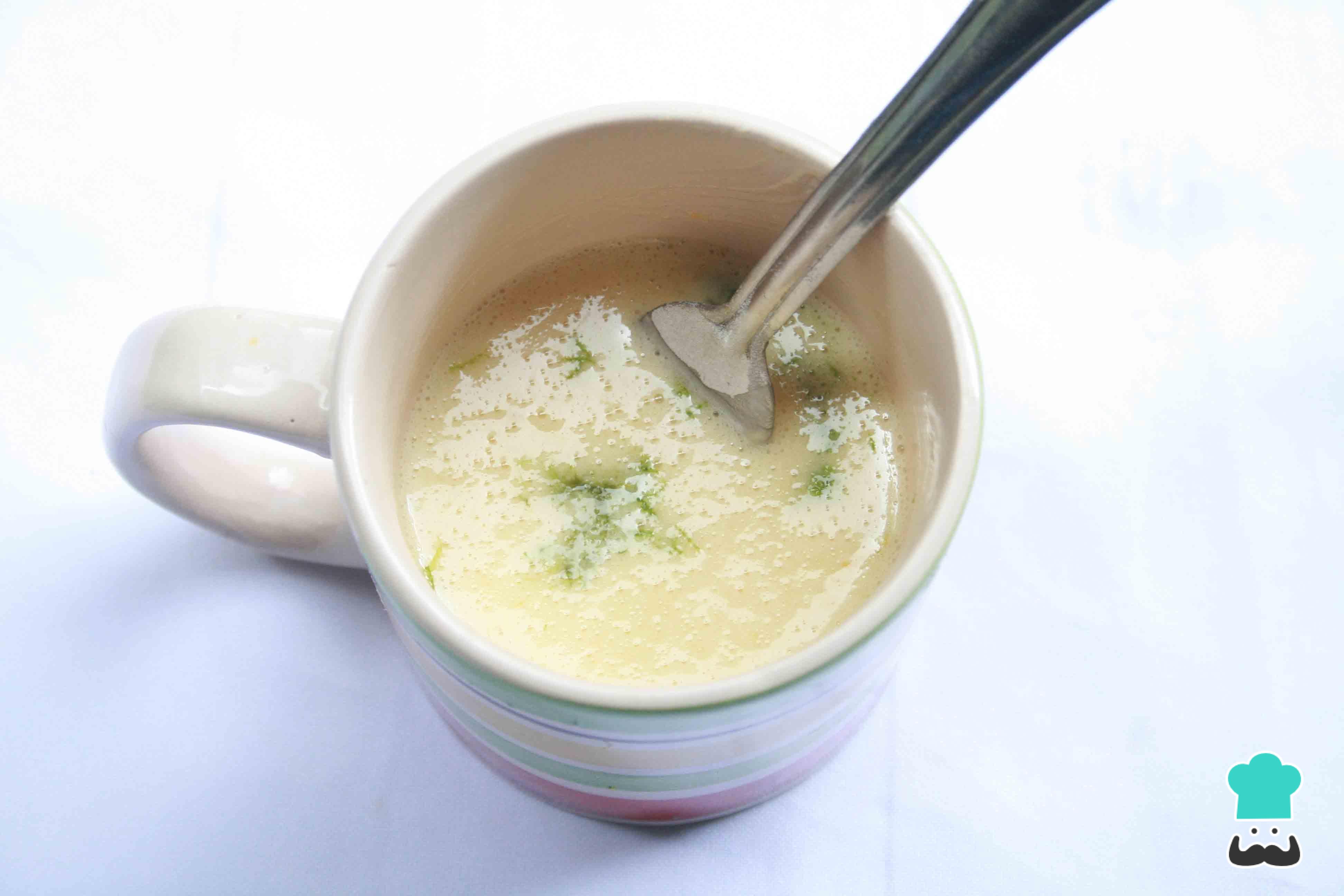 Por fim, adicione a raspa e o suco de limão na xícara e mexa bem. Pronto para cozinhar: leve este bolo de limão de caneca por 2 minutos no microondas em potência máxima e observe o bolinho crescendo!
