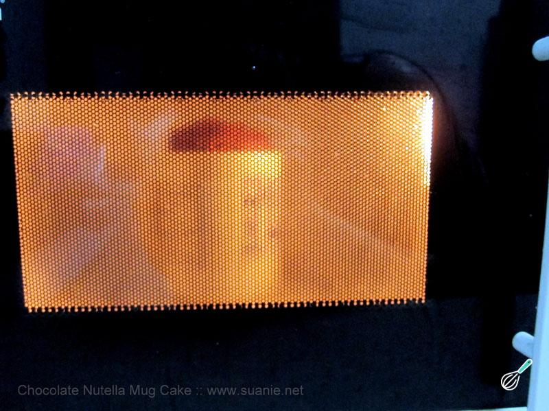 Leve a caneca ao microondas em potência máxima por 2 minutos ou um pouco mais, se observar que o bolo ainda não está pronto ao fim desse tempo.