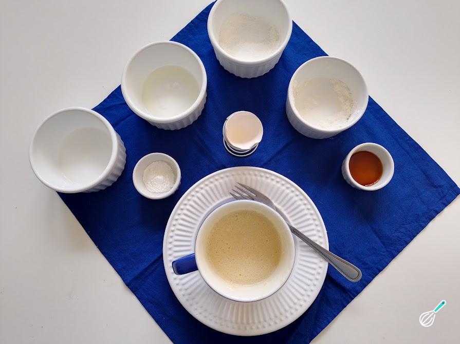 Separe todos ingredientes necessário para iniciar o preraro do seu bolo branco de caneca.