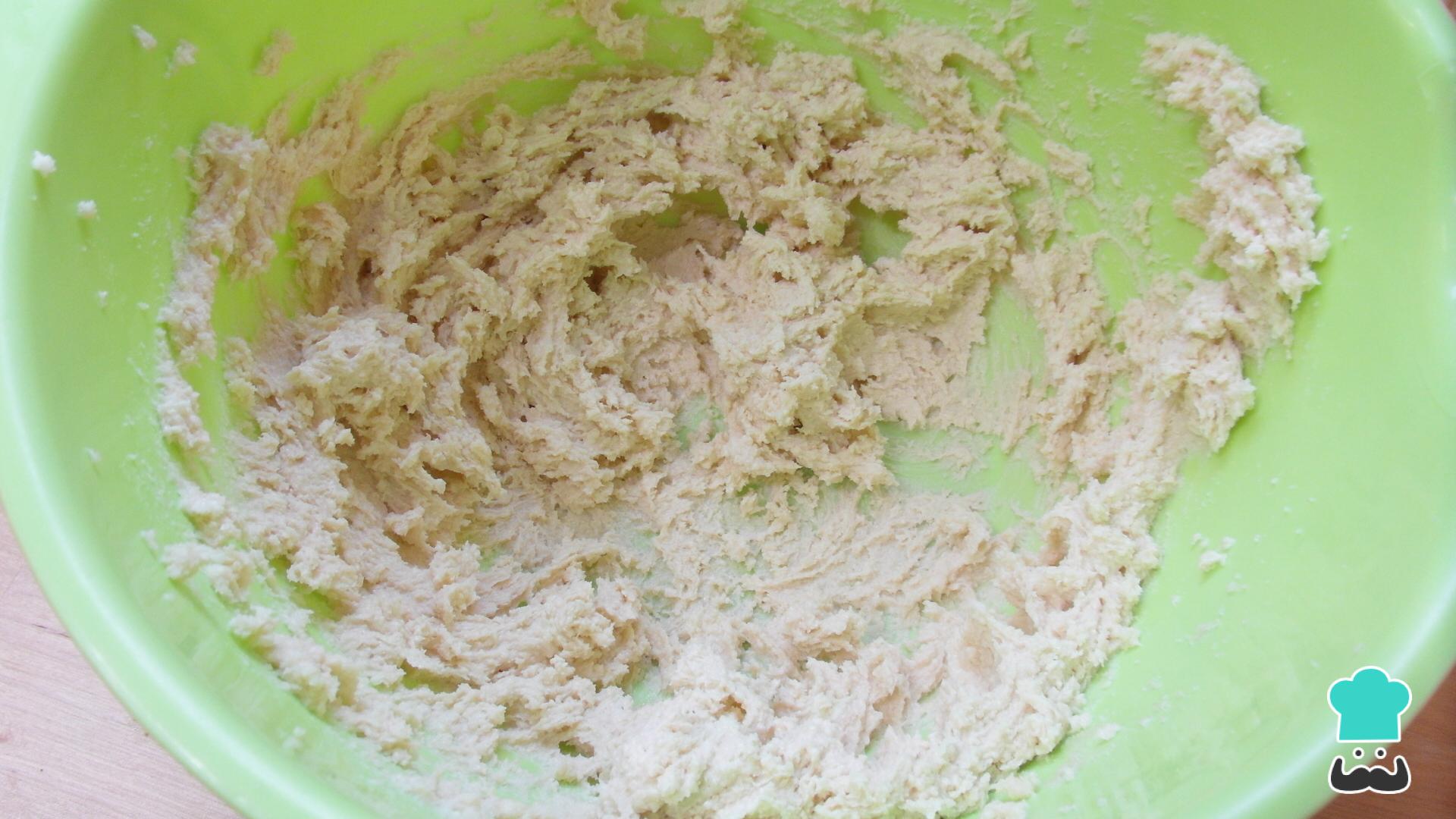 O primeiro passo é bater a manteiga com o açúcar, de preferência usando uma batedeira elétrica, até obter uma pasta.