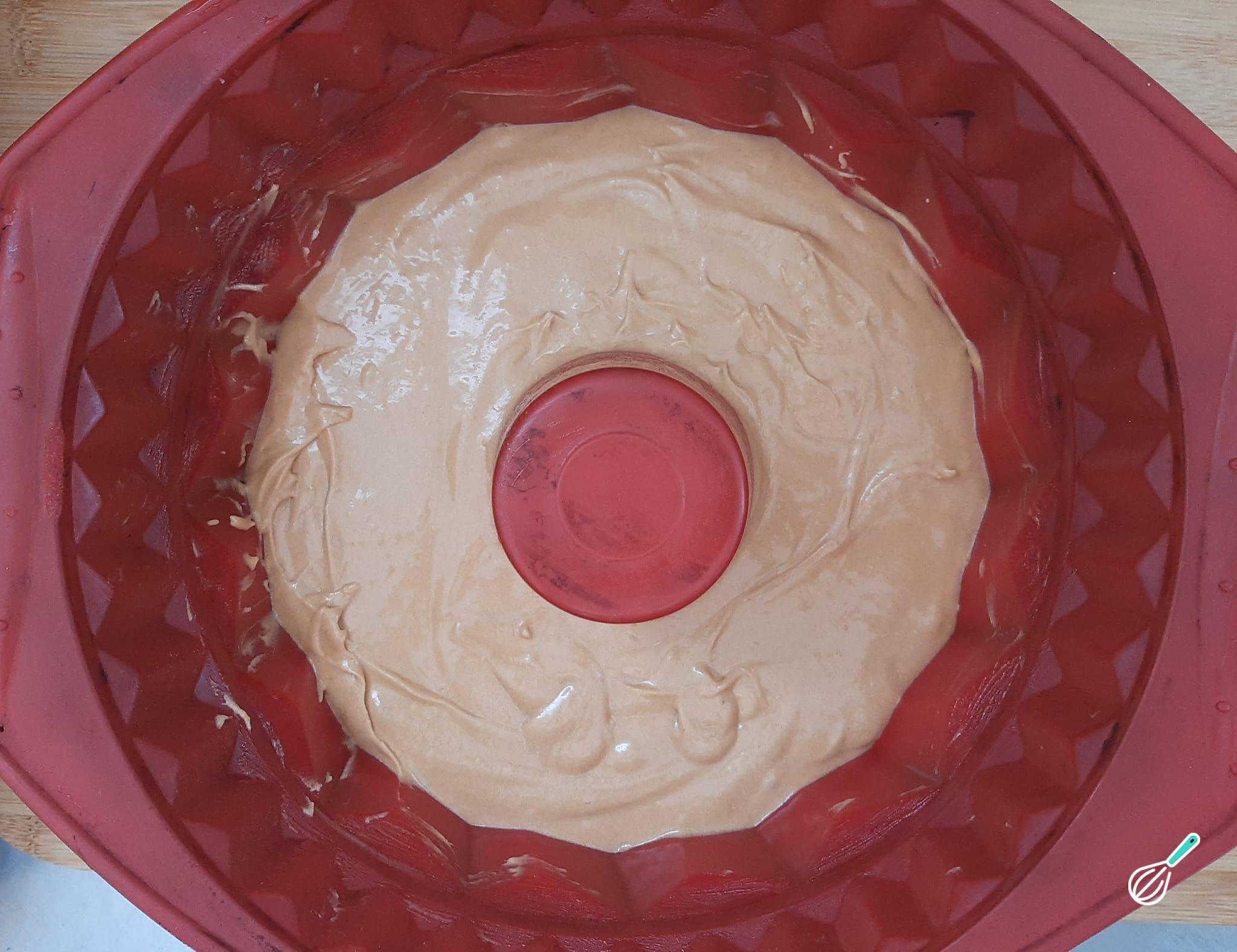 Transfira a massa para uma forma média untada e enfarinhada (caso seja de silicone não precisa untar e enfarinhar) e leve para assar em forno preaquecido a 180 graus por 40 - 45 minutos ou até passar pelo teste do palito.