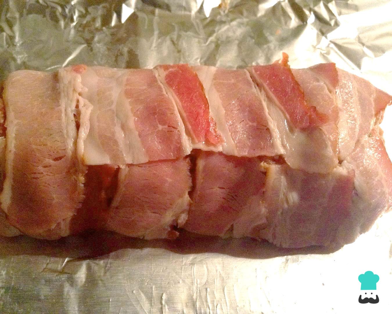 Dica: Se você quiser pode substituir o ovo por molho barbecue, mostarda ou maionese. O importante é untar a carne com um ingrediente que ajude o bacon a grudar melhor nela.