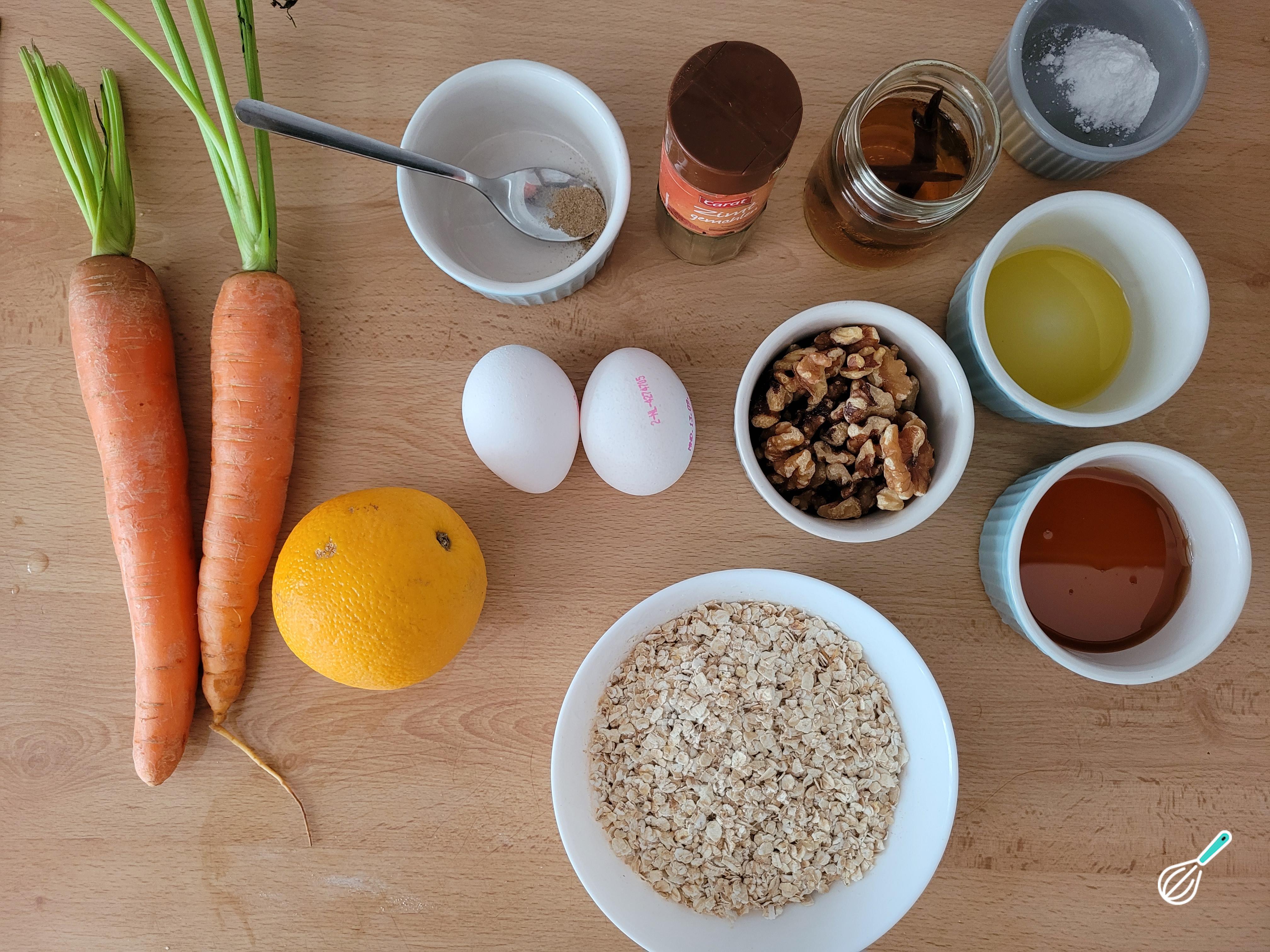 Separe todos os ingredientes para fazer seu bolo de cenoura com aveia.