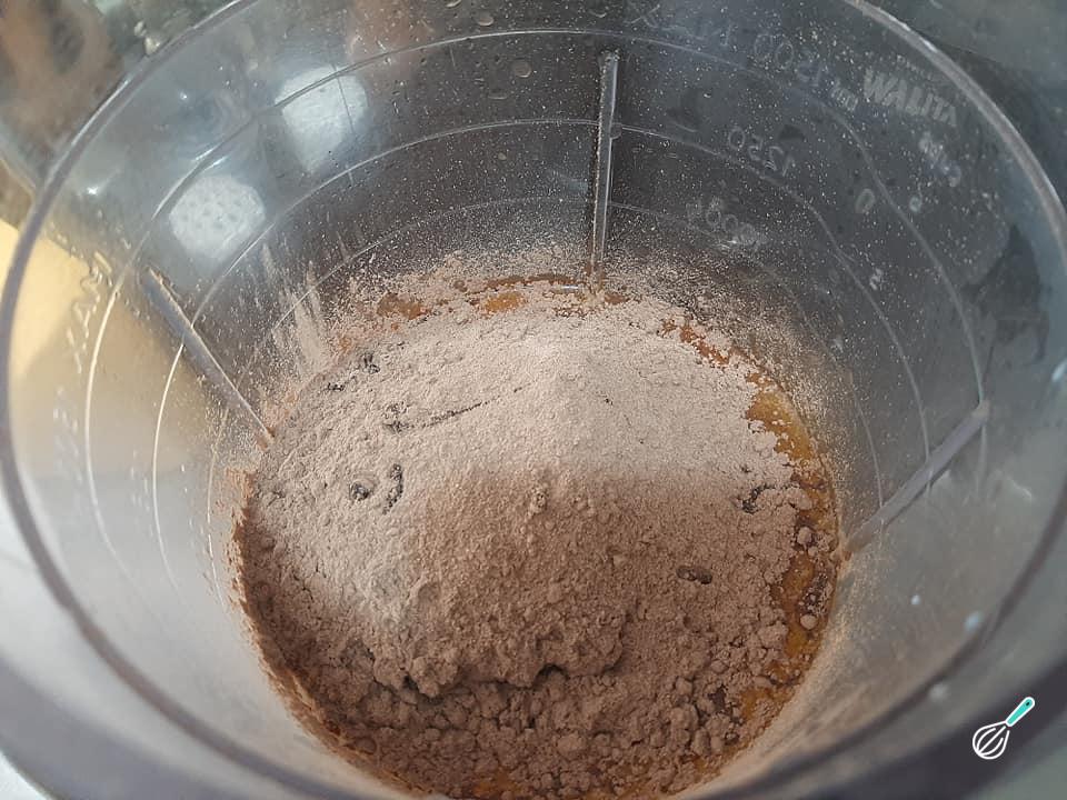 Bata no liquidificador todos os ingredientes do brigadeirão, até que fique homogêneo.