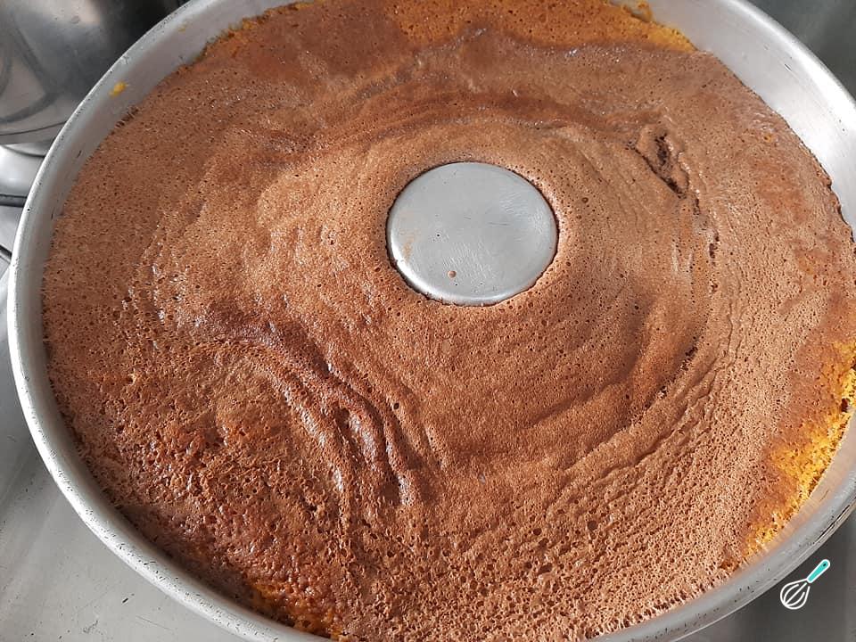 Dica: Utilizamos uma forma com furo central com diâmetro de 25 x 8 cm.