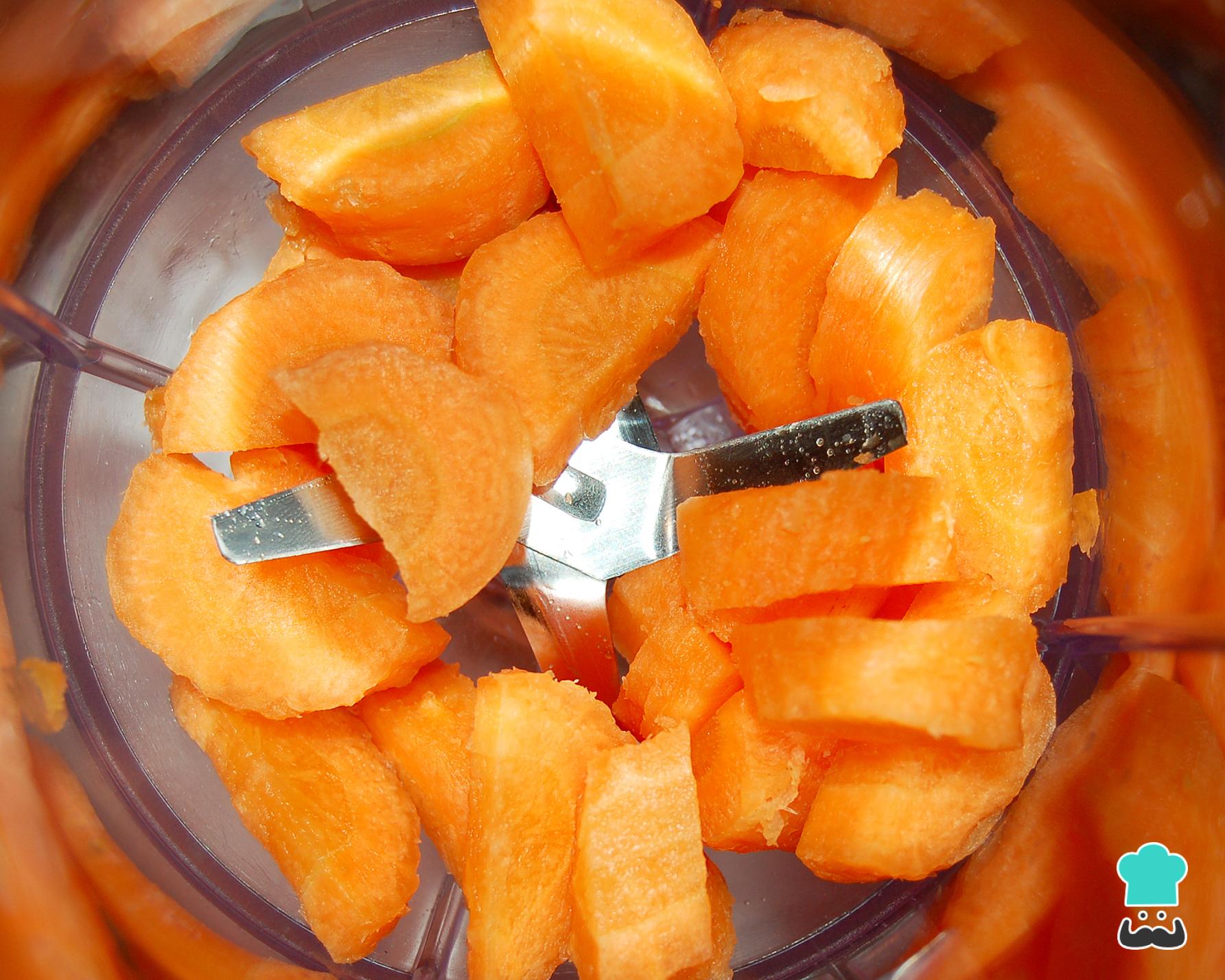 No liquidificador coloque as cenouras descascadas e picadas com os ovos, o açúcar e o óleo. Bata tudo até misturar e ficar homogêneo.