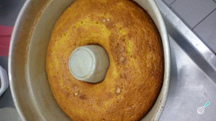 De seguida, coloque a massa em uma forma de bolo untada e enfarinhada e asse no forno médio pré aquecido. Para saber se o bolo está pronto, faça o teste do palito.