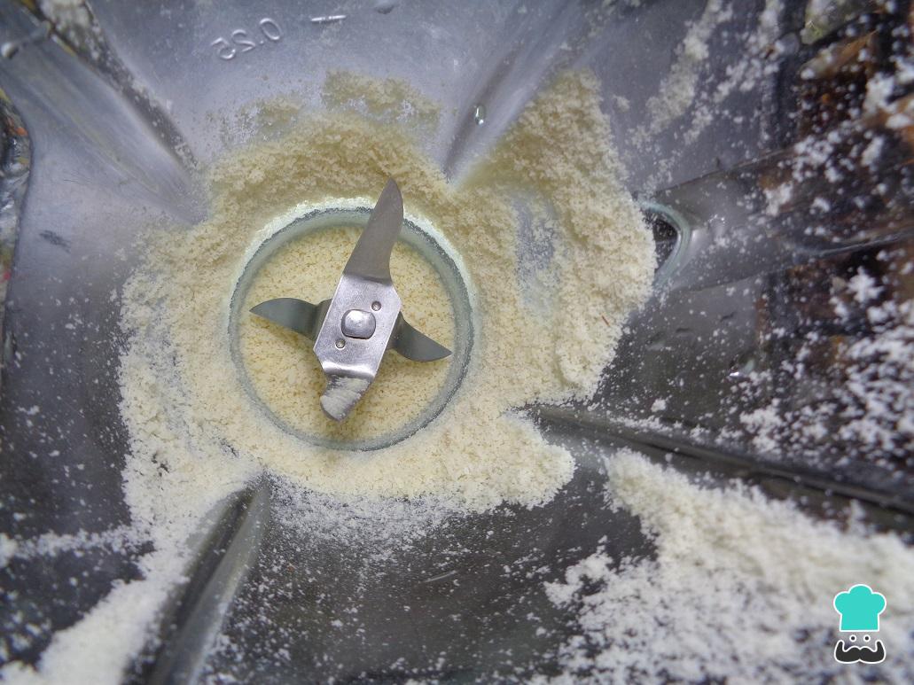 Se você não tem farinha de amêndoas em casa, basta que tenha pelo menos 250 gramas de amêndoas (de preferência sem pele)! Nesse caso, triture as amêndoas no liquidificador ou num processador até que virem farinha, como na foto.