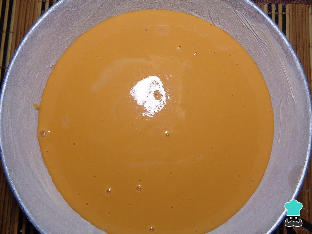 Dica: uma das razões por que o bolo de cenoura fica pesado ou solado é a cenoura mal triturada ou cenoura a mais. Nesta receita use 3 cenouras médias (aproximadamente 350 gramas) e bata-as muito bem no liquidificador antes de avançar para o passo seguinte.