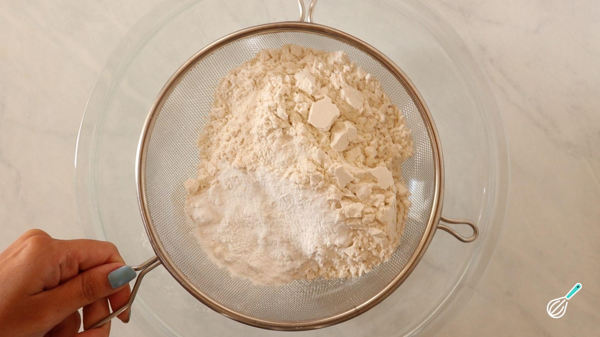 Peneire a farinha + sal + fermento em uma tigela e reserve.