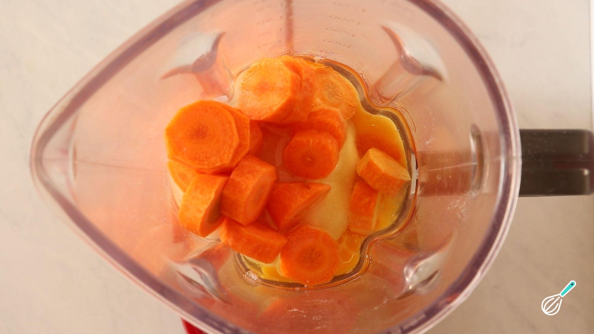 Bata bem no liquidificador os ovos, a cenoura, o óleo e o açúcar.