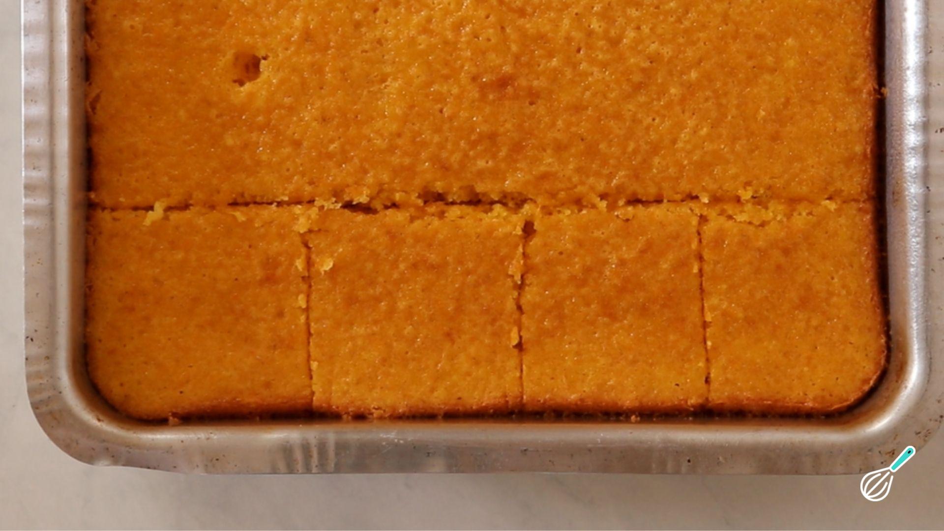 Espere o bolo esfriar completamente e corte em quadradinhos do tamanho que desejar.