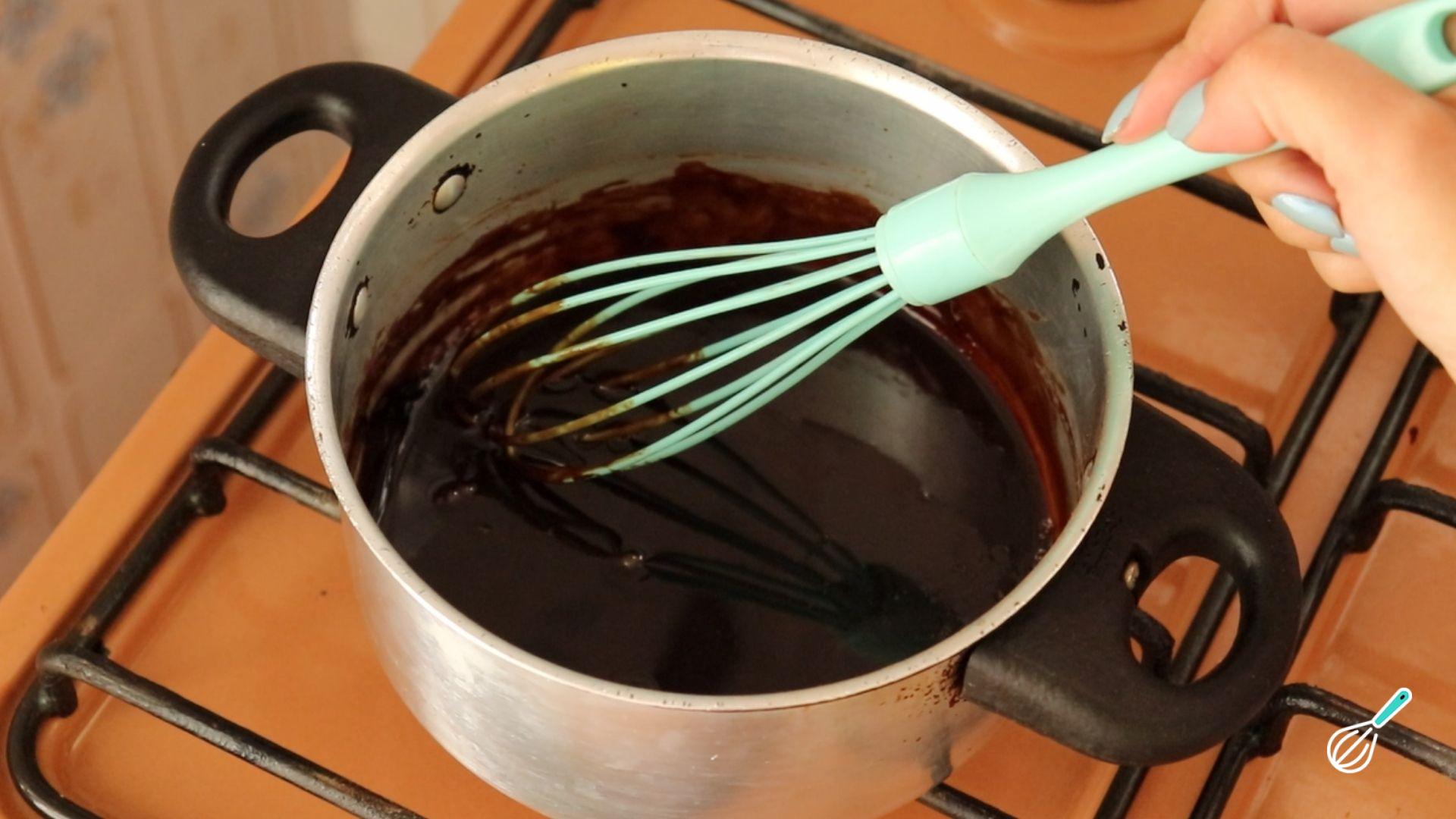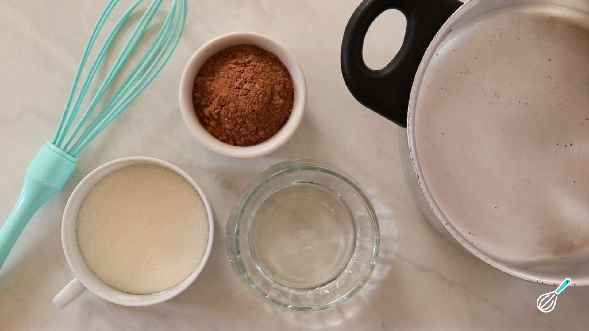 Enquanto isso, separe os ingredientes da calda de chocolate do seu bolo de cenoura no palito.