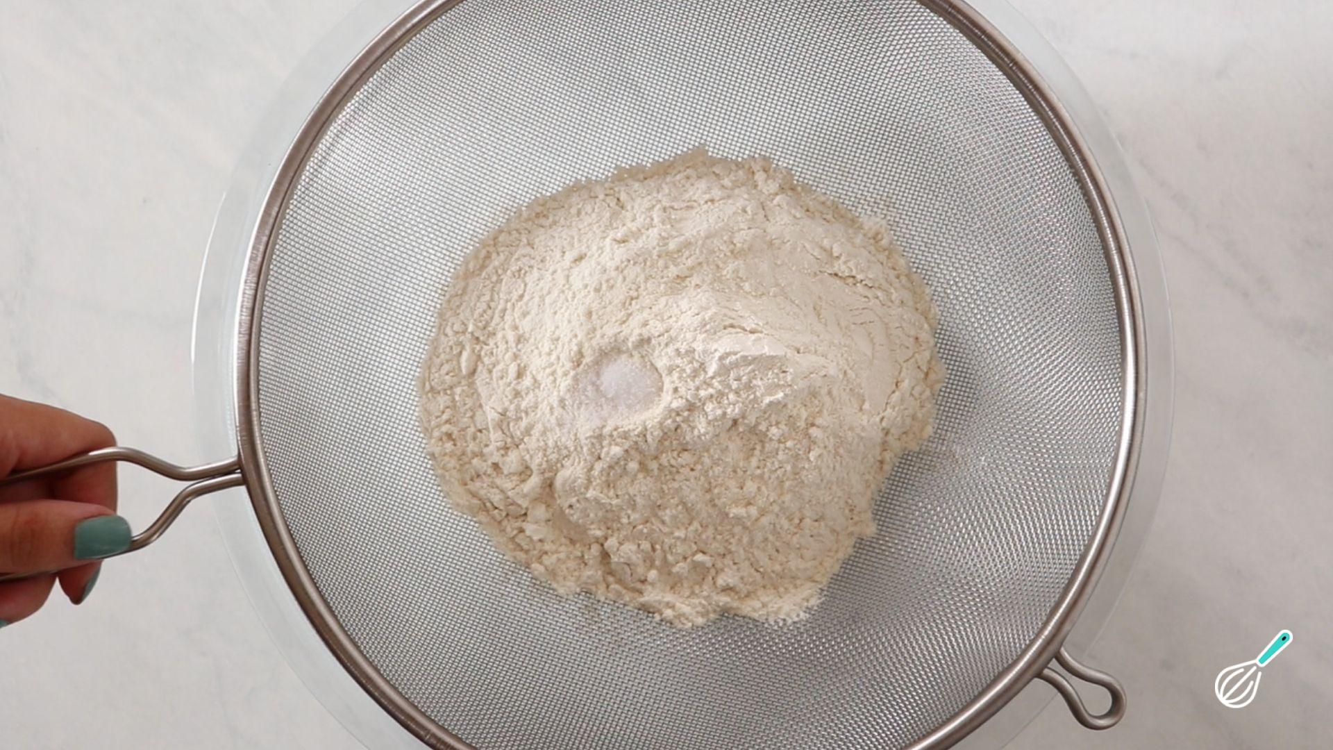 Peneire a farinha, o fermento e o sal em uma tigela grande.