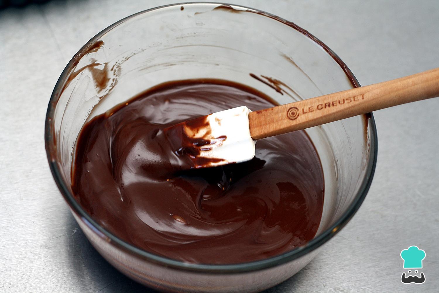 Num recipiente que possa ir no microondas coloque o chocolate picado. Esquente no microondas em potência máxima por 30 segundos, retire para mexer e devolva por mais 30 segundos. Repita novamente se necessário até o chocolate ficar completamente derretido.