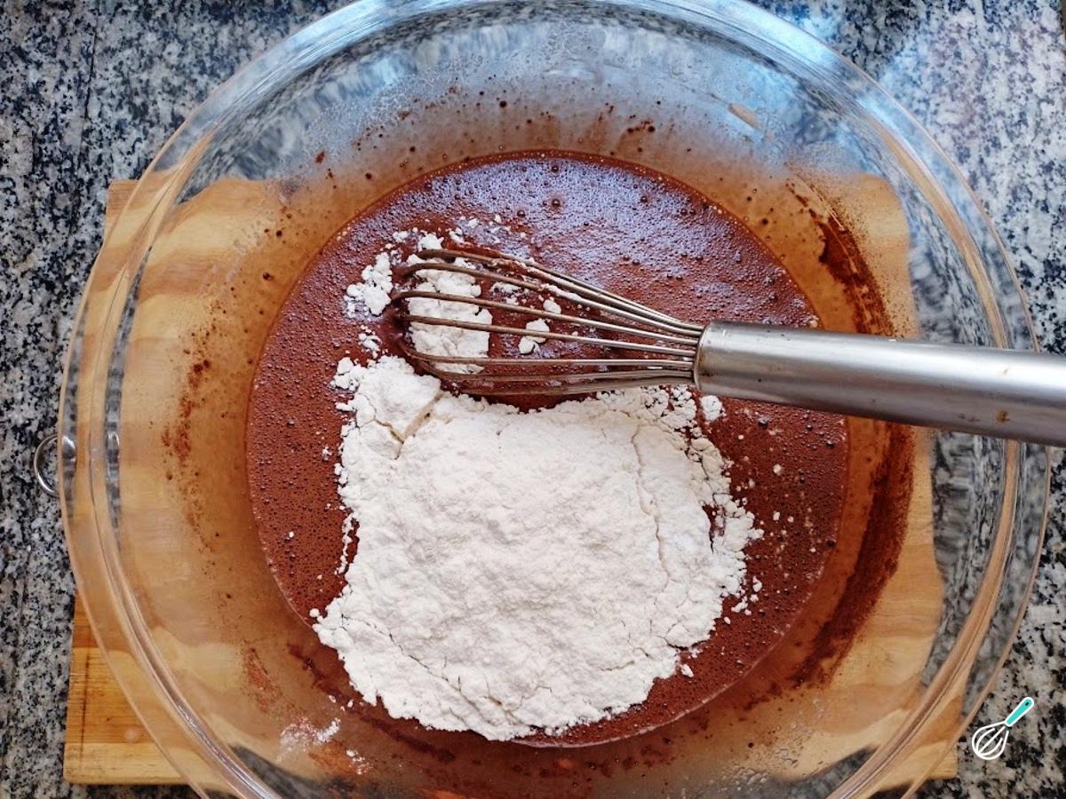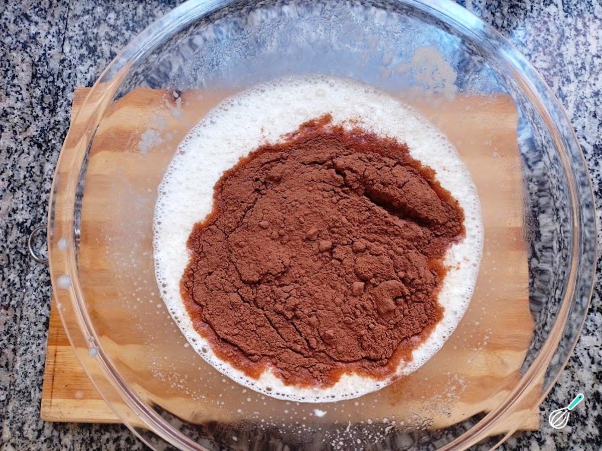 Neste momento, adicione o chocolate em pó. Você pode optar pelo chocolate 50% ou 32%, a depender da sua preferência.