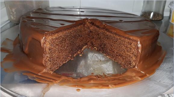 Cubra o bolo com o creme de chocolate preparado no passo anterior e reserve na geladeira para a cobertura firmar um pouco. Delicie-se com este maravilhoso bolo de chocolate fofinho e cremoso e conte nos comentários o que você achou. Bom apetite!